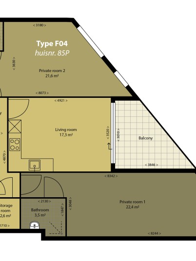 2Peer (Cruquius Amsterdam) consists of 23 apartments, developed for house sharing, ranging from 70 to 105 m². Each resident rents a very spacious bedroom with luxury bathroom, the living room / kitchen / balcony you share with one or up to two other house sharers. You can register together with a future roommate, but we can also help you find your perfect roommate.