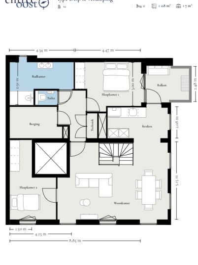 - Twee slaapkamers aanwezig