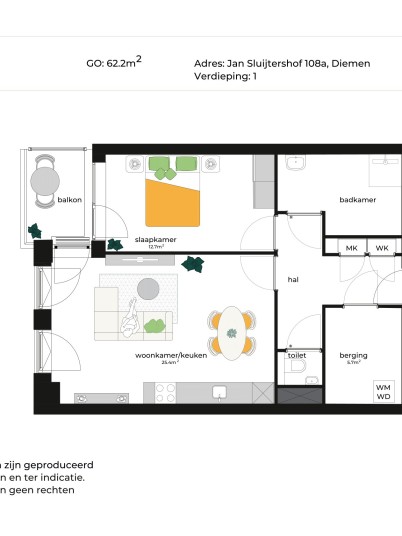 Alle informatie met betrekking tot de woning is met zorg samengesteld. Deze is echter indicatief en er kunnen geen rechten aan ontleend worden.