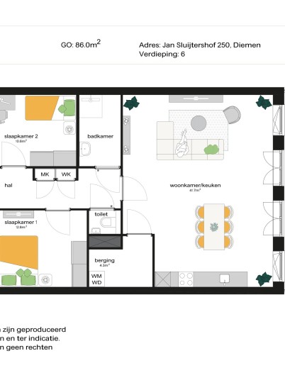 Alle informatie met betrekking tot de woning is met zorg samengesteld. Deze is echter indicatief en er kunnen geen rechten aan ontleend worden.