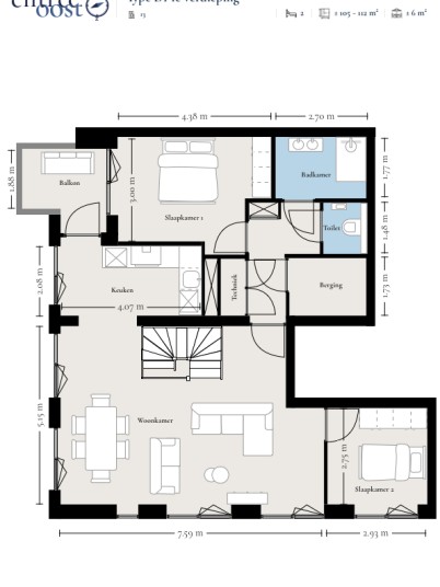 - Woonoppervlakte ca. 105 m²