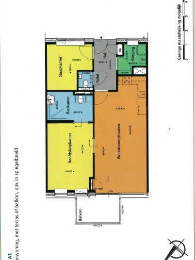 Wanneer u het appartement binnenkomt via de hal heeft u toegang tot de inpandige berging, badkamer en woonkamer. Vanuit de woonkamer komt u in de slaapkamer. De slaapkamer geeft ook toegang tot de badkamer.