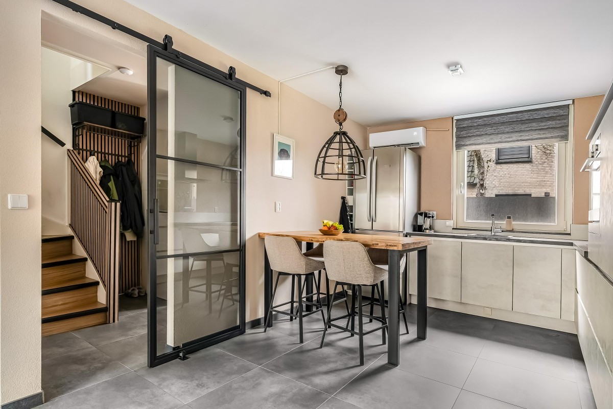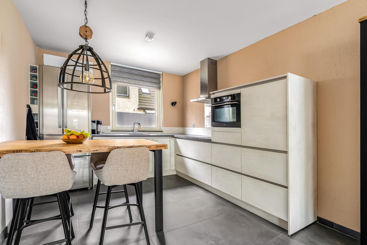Lees verderDe serre heeft toegang en een mooi zicht op de achtertuin. De keuken is aan de voorzijde gelegen en uitgevoerd met een complete L-vormige inbouwkeuken voorzien inbouwapparatuur te weten: vaatwasser, inductie kookplaat met afzuiging, Amerikaanse koelkast en stoomoven. De vloer op de begane grond is voorzien van plavuizen in combinatie met elektrische vloerverwarming. De wanden en plafonds zijn afgewerkt met sierpleister. Via de trap in de hal bereikt u de 1e verdieping