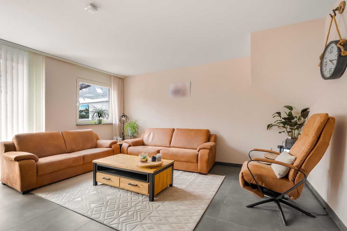 - Tuingerichte woonkamer met schuifpui en groot raam;