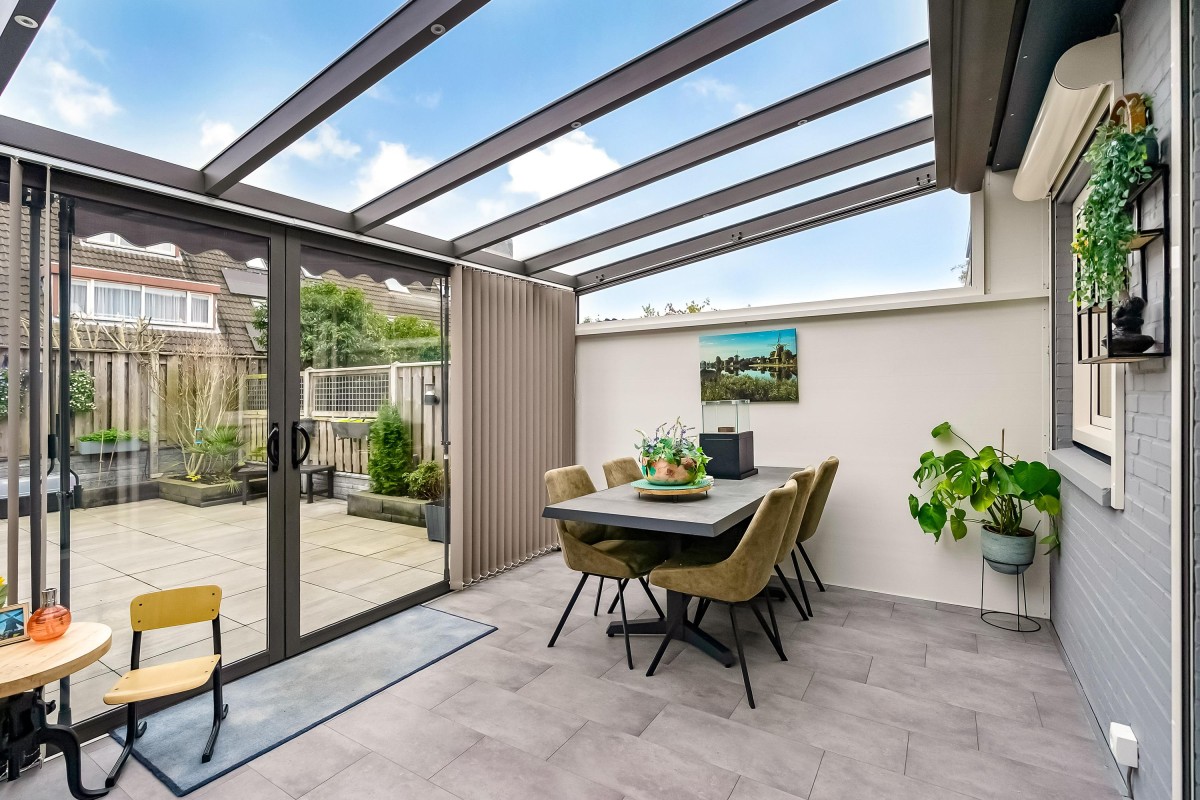 - Serre is voorzien van dubbele schuifpui en zonnewering;