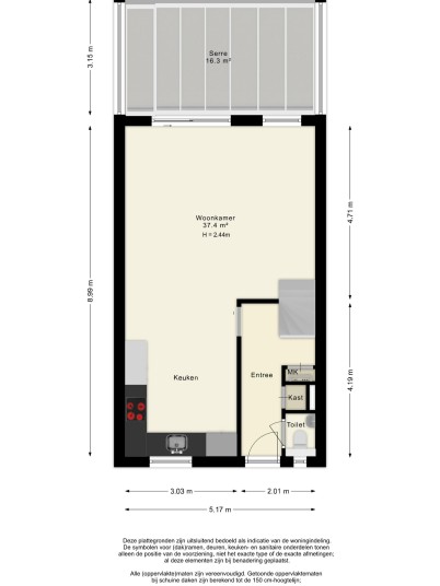 Entreehal met toilet, meterkast, garderobe-/bergkast, trapkast en toegang tot de tuingerichte woonkamer. De woonkamer is voorzien van een brede schuifpui en een groot raam. Hierdoor heeft u veel daglicht en toegang tot de achtergelegen serre.