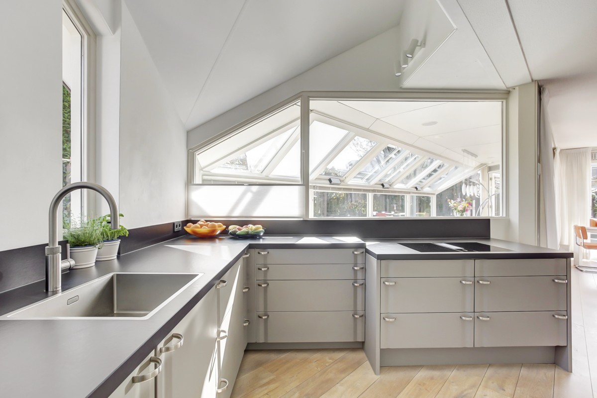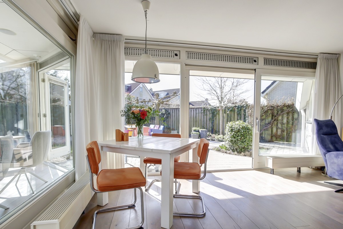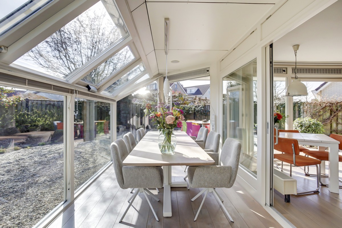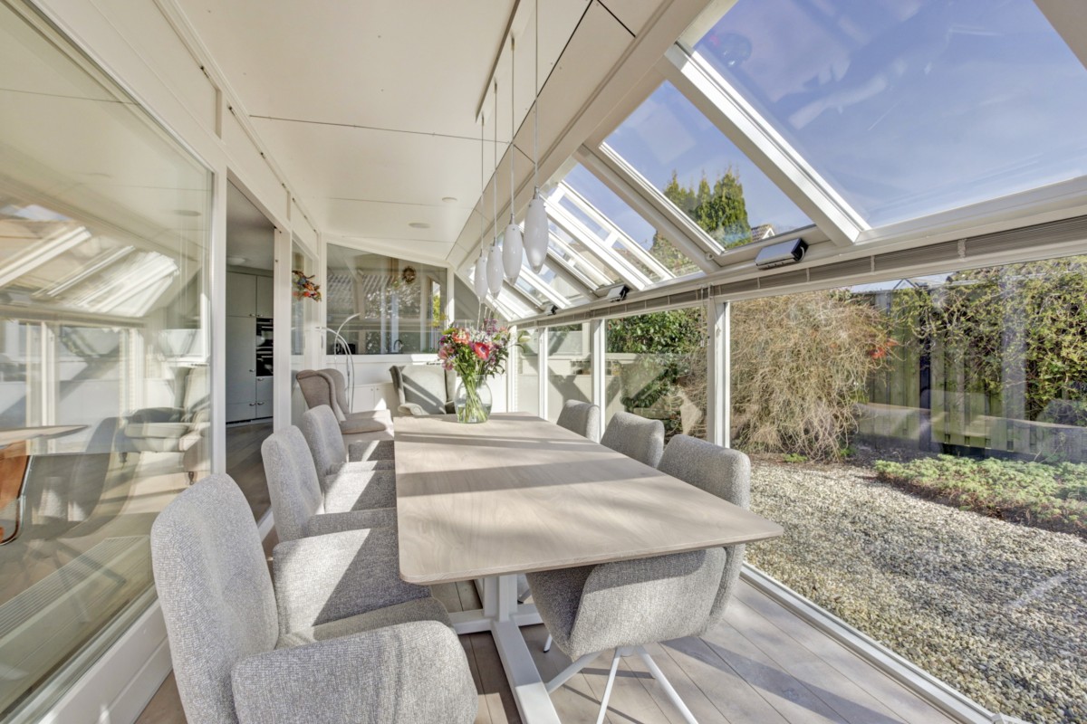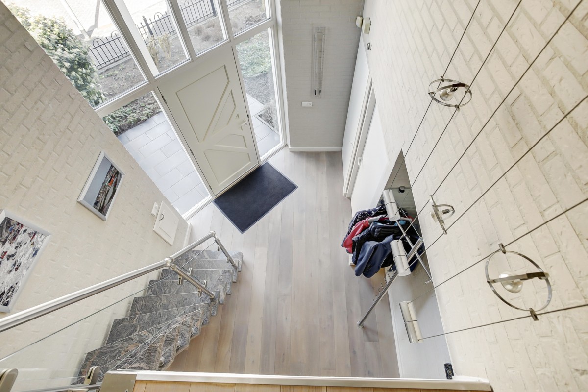 Begane grond: lichte entree met prachtige glaspartij en hoogtewerking. De hal beschikt over een garderobe, uitgebreide meterkast, luxe toiletruimte en design trap naar de vide. Aan de voorzijde van de woning is een ruime slaapkamer gesitueerd met aansluitend een luxe badkamer met vloerverwarming, 2e hangcloset, wastafelmeubel met dubbel wastafel en een inloopdouche. Een loopdeur vanuit de hal geeft toegang tot de inpandige geïsoleerde verwarmde garage. Deze garage heeft een elektrische sectionaaldeur naar de oprit en een loopdeur naar het overdekte terras. Een elektrisch bedienbaar luik geeft toegang tot de kelder welke onder deze garage gelegen is. De lichte living is centraal in de villa gelegen, wat een mooi uitzicht op de achtertuin geeft. De schuifpui biedt tevens toegang tot het overdekte terras. Middels een tweede schuifpui is de prachtige serre van maar liefst 10 meter breedte bereikbaar. Ook deze serre biedt toegang tot het terras. Aansluitend is de luxe Poggenpohl keuken gelegen welke beschikt over een groot Dekton (Sirius Solid) werkblad, veel kastruimte en een ingebouwde koelkast, combi-oven, oven, Quooker, vaatwasser, Bora Classic 2.0 inductiekookplaat met afzuiging. Vanuit de keuken is toegang tot de betegelde bijkeuken en tweede inpandige geïsoleerde en verwarmde garage met vrije hoogte, elektrische sectionaaldeur, loopdeur en spoelbak met warm en koud water. Een washoek beschikt over een wasmachine- en drogeraansluiting.