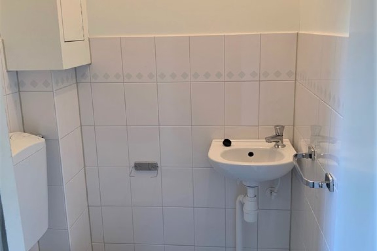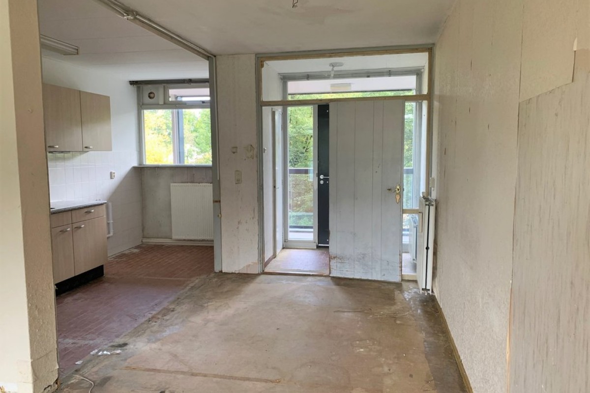 Woonlaag 2: tochtportaal met meterkast, royale woonkamer met toegang naar het riante balkon. Aan de voorzijde bevindt zich de open keuken in een rechte opstelling geplaatst. Drie slaapkamers, c.v. ruimte, toilet, badkamer met douche, toilet en wastafel.