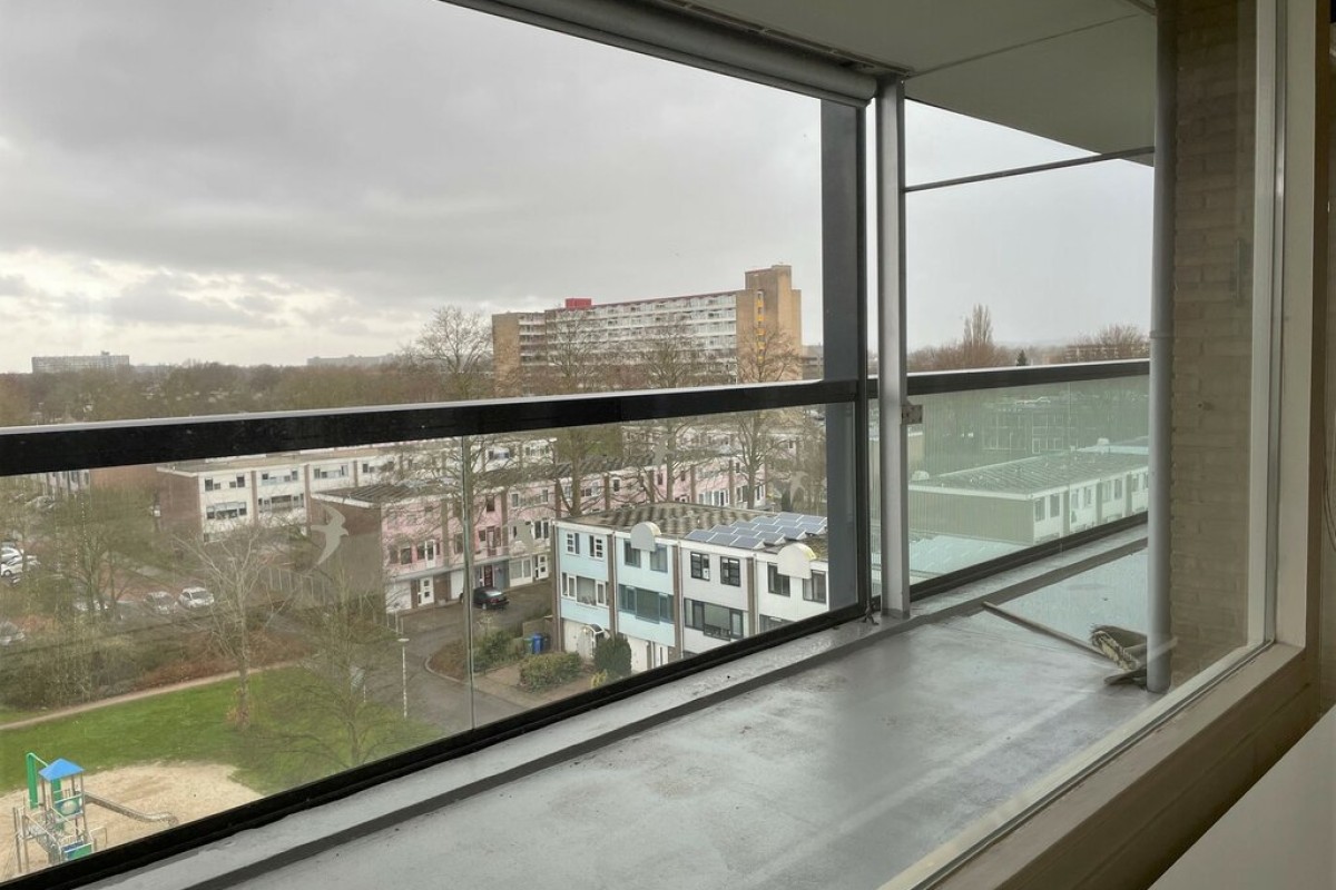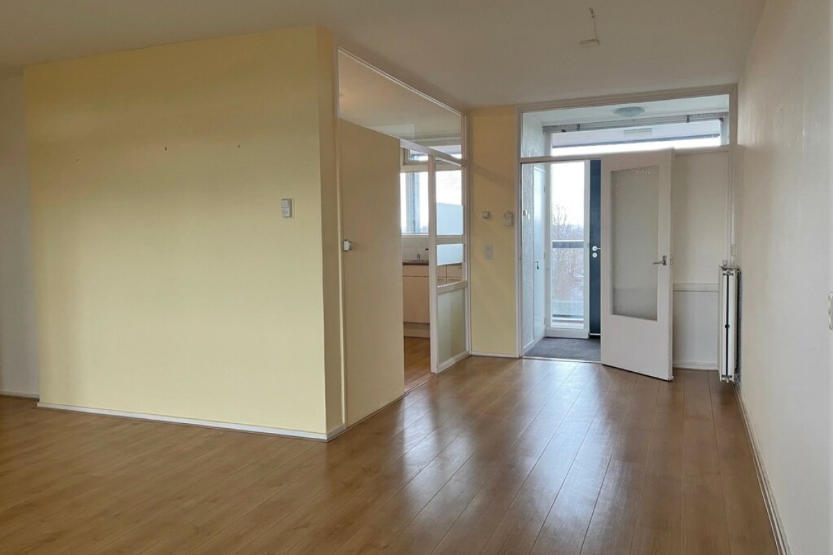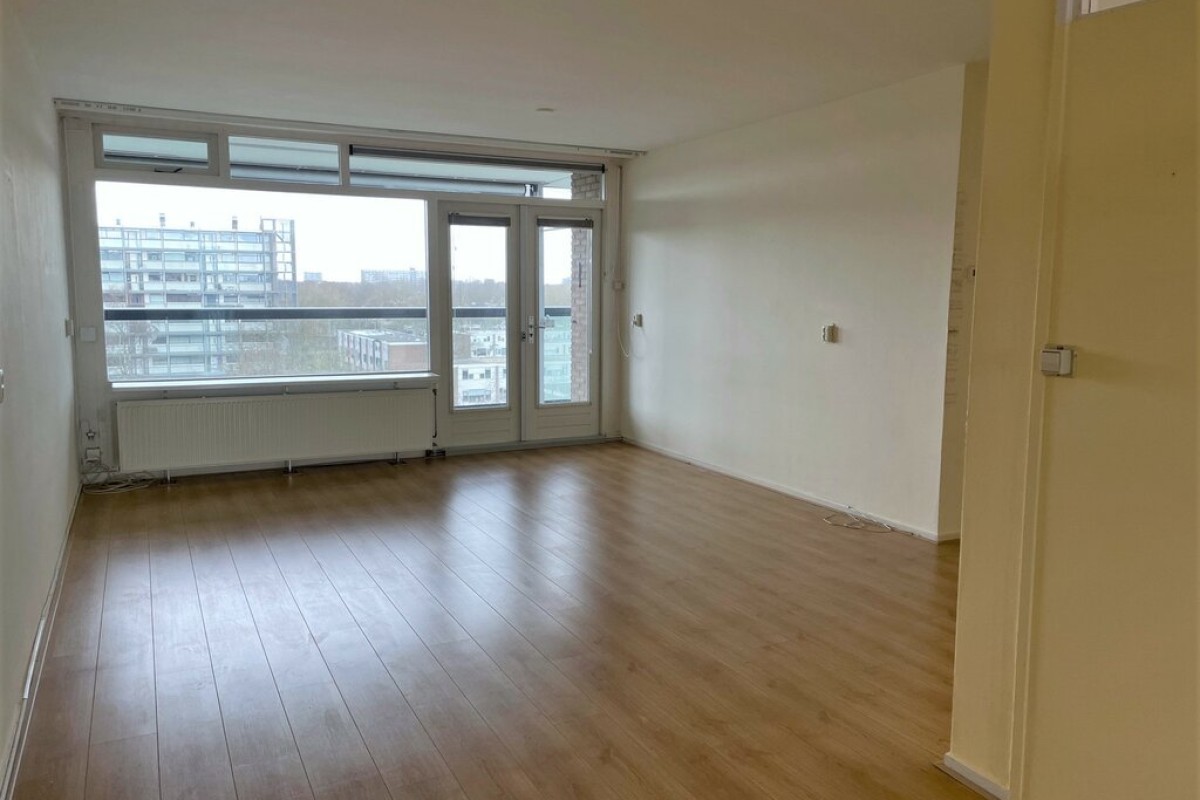 Woonlaag 6: tochtportaal met meterkast, royale woonkamer met toegang naar het riante balkon. Aan de voorzijde bevindt zich de dichte keuken in een hoekopstelling geplaatst. Drie slaapkamers, c.v.-ruimte, toilet, badkamer met douche en wastafel.