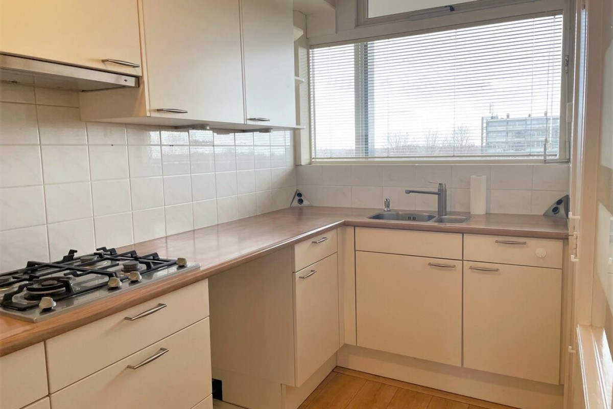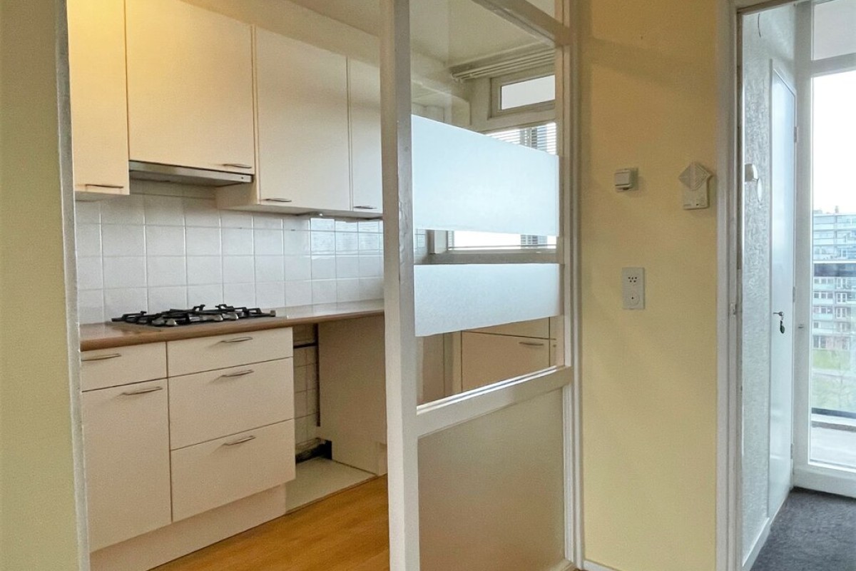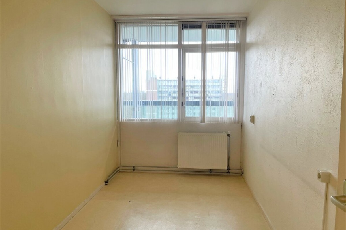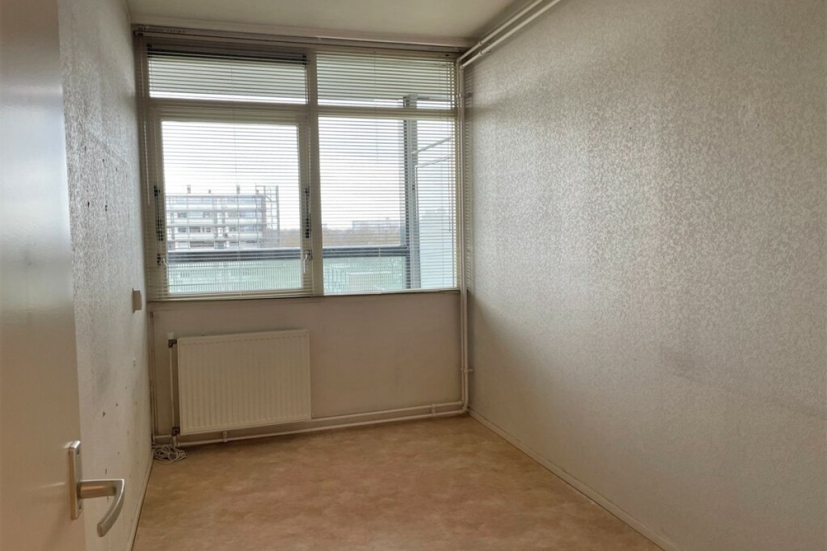 Woonlaag 6: tochtportaal met meterkast, royale woonkamer met toegang naar het riante balkon. Aan de voorzijde bevindt zich de dichte keuken in een hoekopstelling geplaatst. Drie slaapkamers, c.v.-ruimte, toilet, badkamer met douche en wastafel.