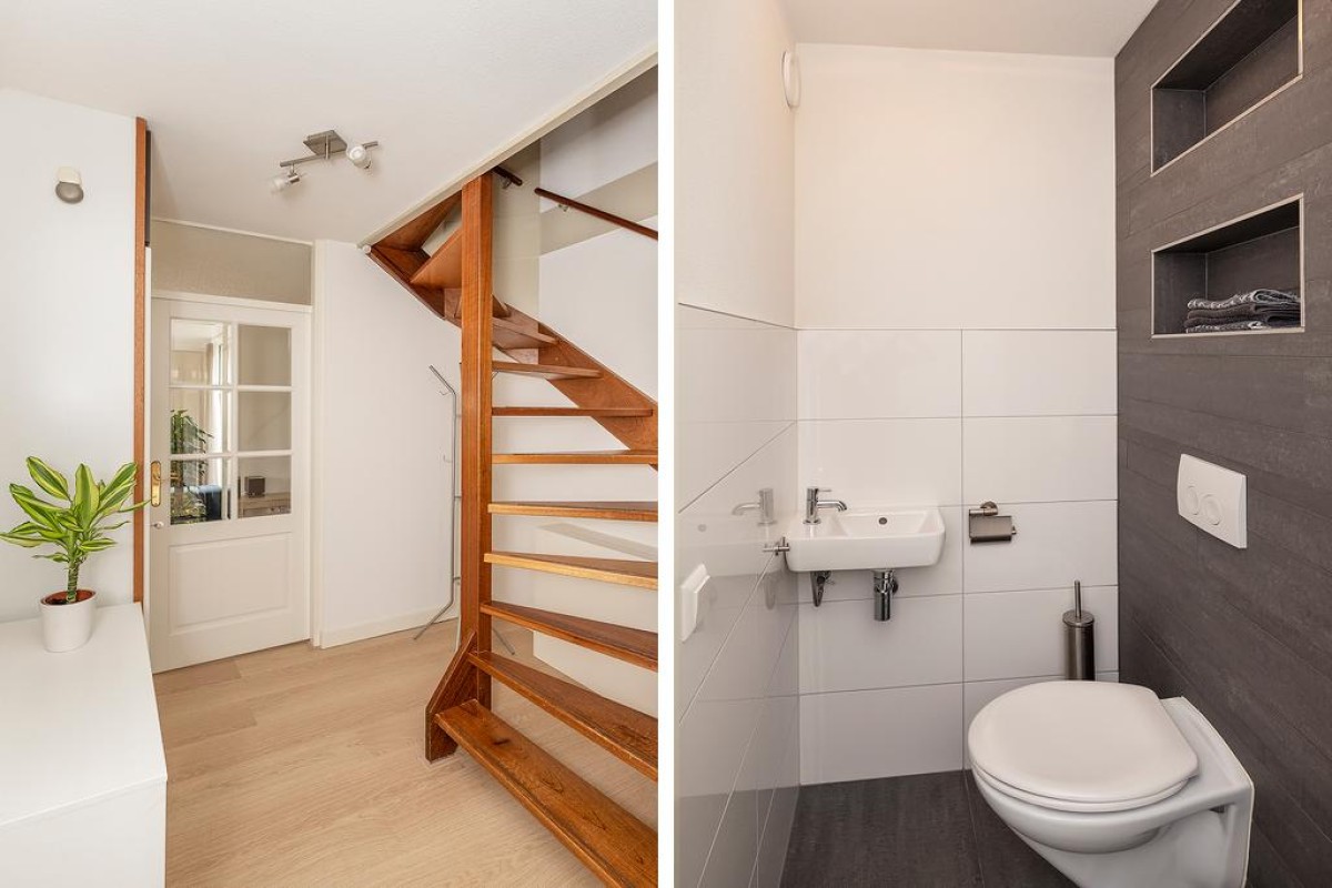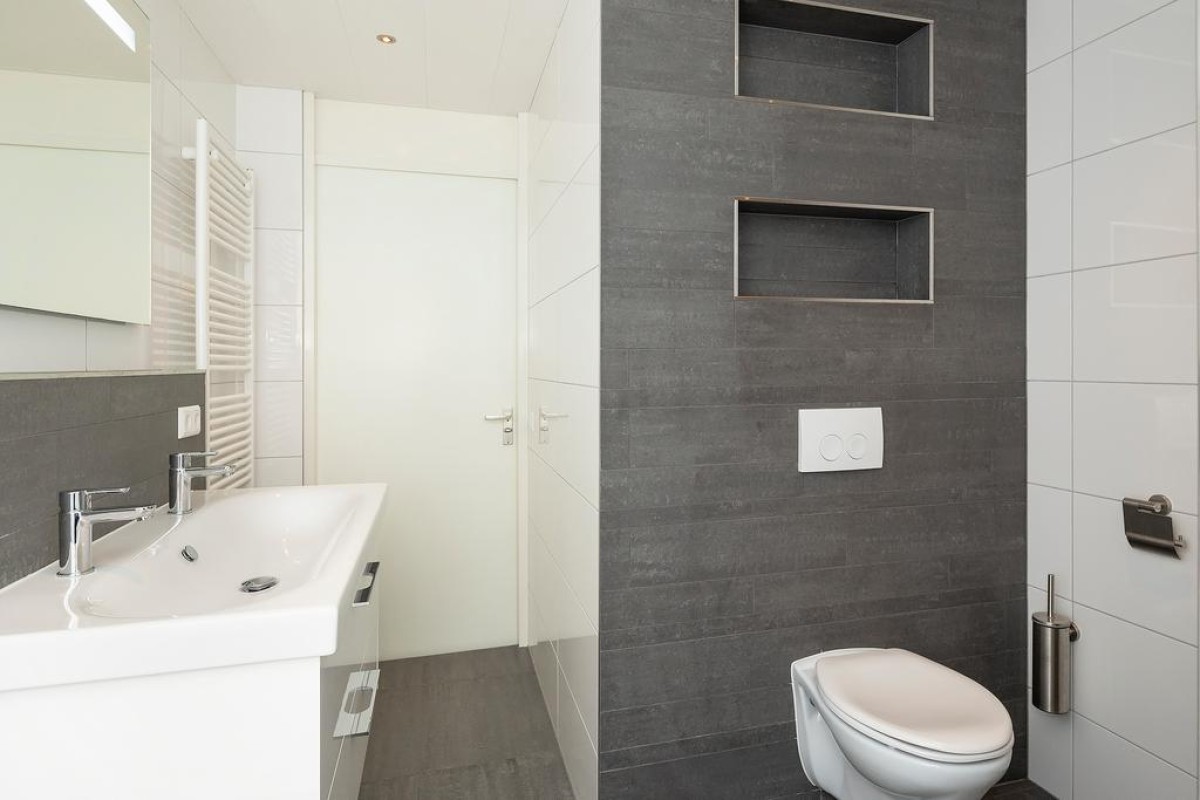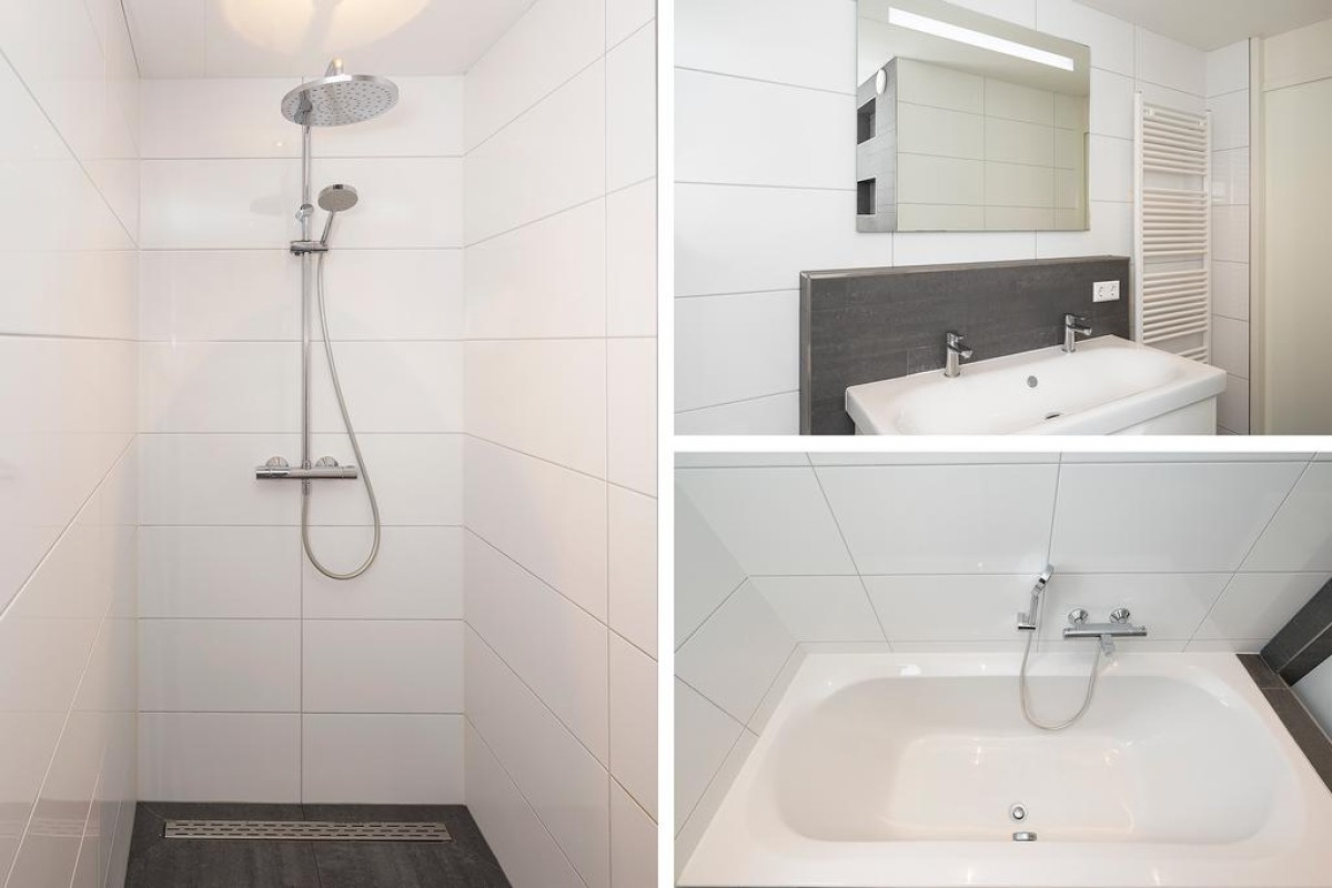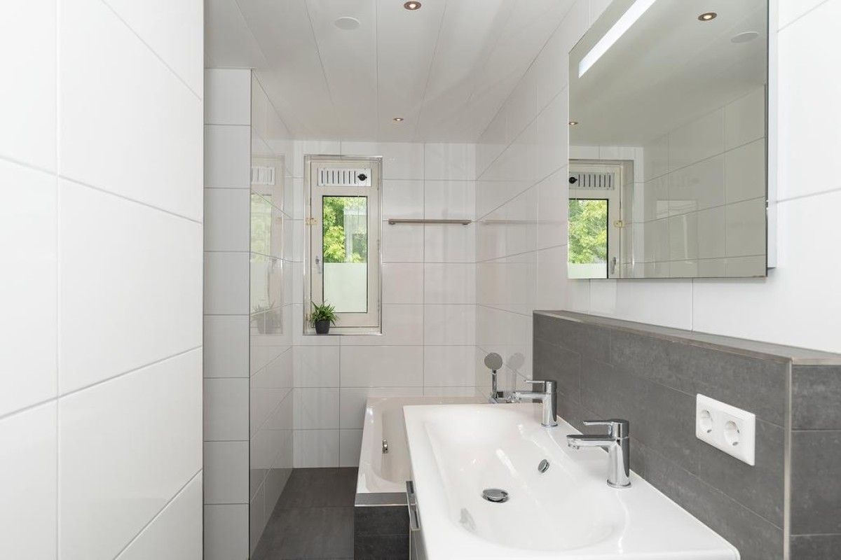 Overloop met trapopgang, grote inloopkast met veel opbergmogelijkheden, drie royale slaapkamers, volledig gemoderniseerde en complete badkamer (2016) voorzien van ligbad, inloopdouche, toilet, dubbele wastafel met meubel en vloerverwarming.