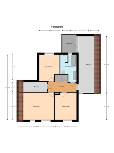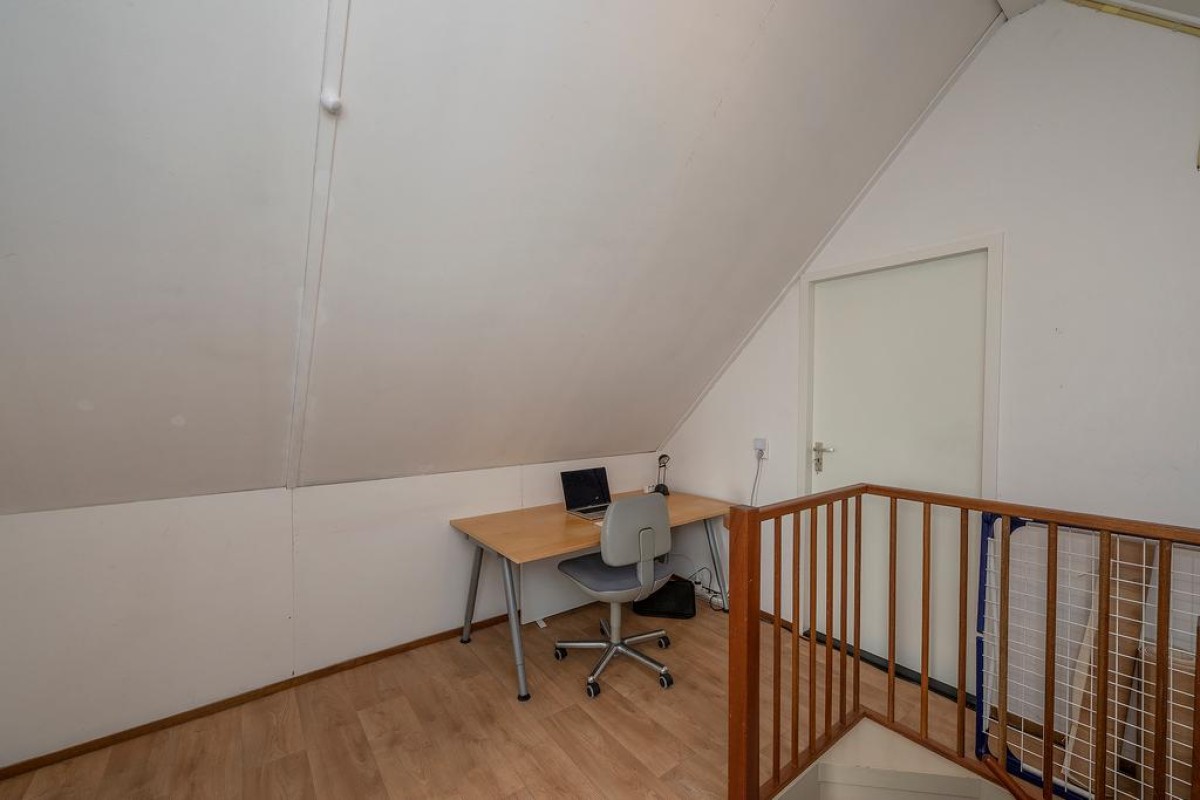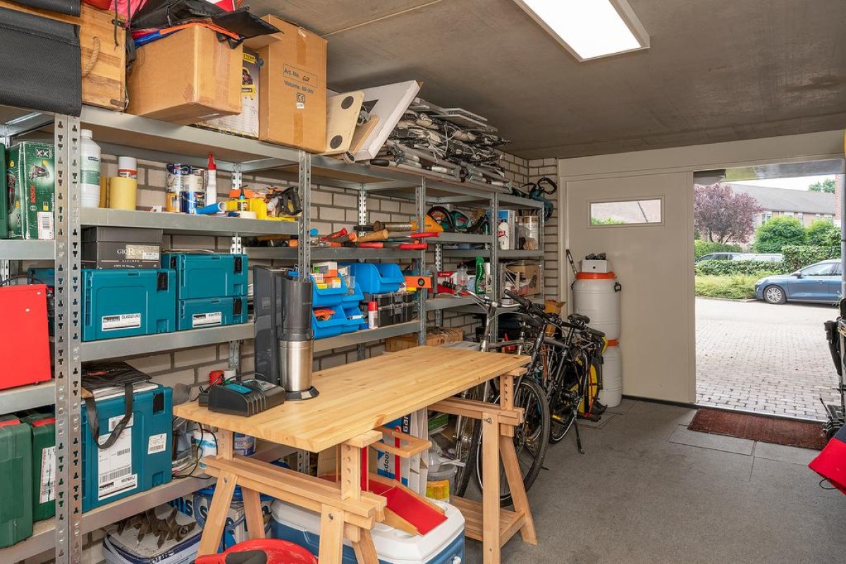 Vanuit de overloop is -over de volle diepte van de garage een verrassend grote berging te bereiken met ook nog eens een doorgang naar een klein dakterras.