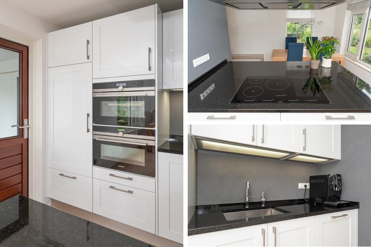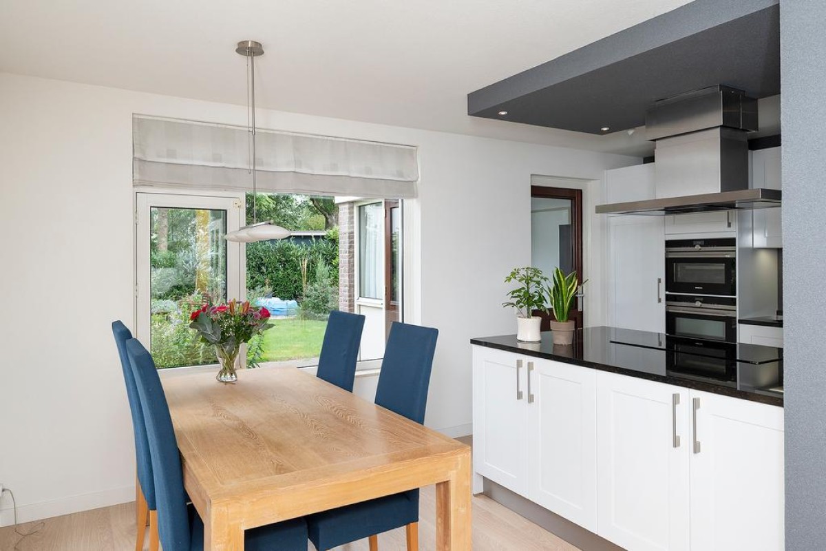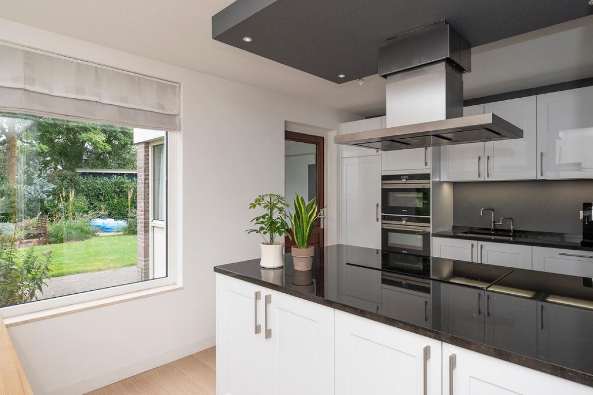 De halfopen keuken met kookeiland welke in 2016 is vernieuwd is tuingericht en is voorzien van diverse inbouwapparatuur zoals een inductiekookplaat, afzuigkap, combimagnetron, stoomoven, vaatwasser, koelkast en een Quooker. Aangrenzend bevindt zich de praktische bijkeuken met aansluiting voor het witgoed. Van hieruit is tevens de ruime inpandige geïsoleerde garage te bereiken.