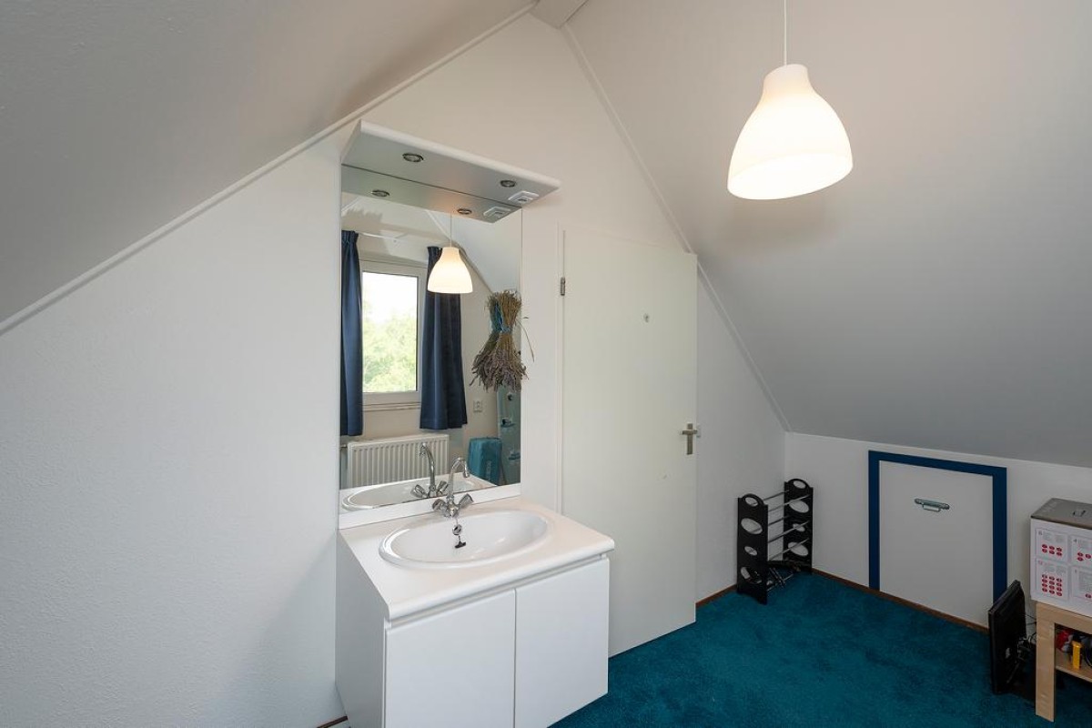 Overloop met CV opstelling, mechanische ventilatiebox en omvormer voor de zonnepanelen. Daarnaast is er één grote en één kleinere slaapkamer aanwezig, beide voorzien van een wastafel.