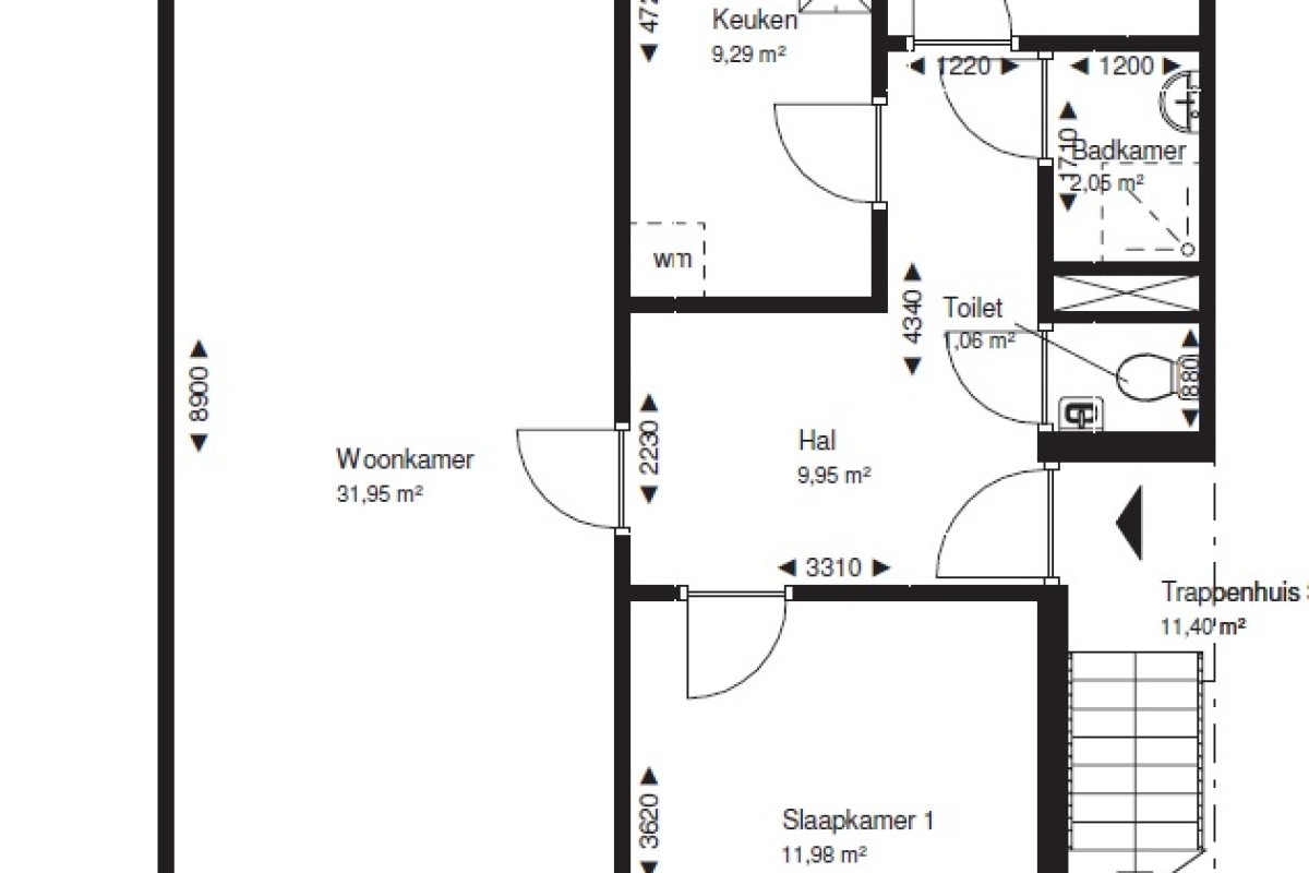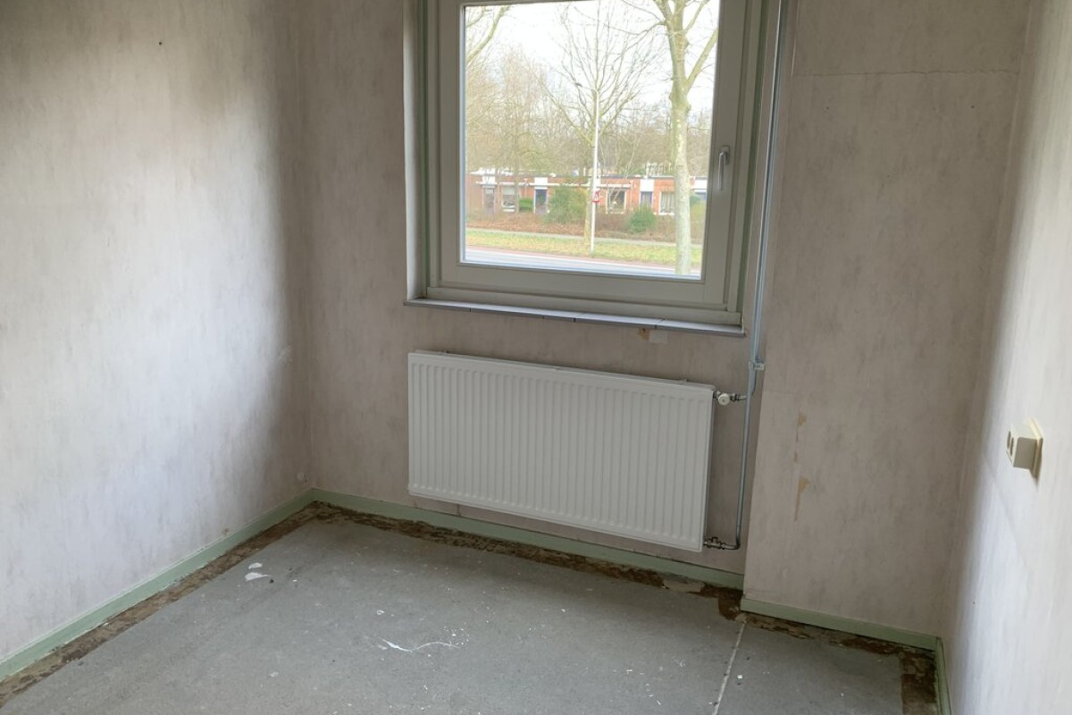 1e verdieping: entree, ruime hal met toegang tot de woonkamer, 3 slaapkamers, dichte keuken met opstelling van de c.v.-installatie (2017), badkamer met douche en wastafel en separaat toilet.