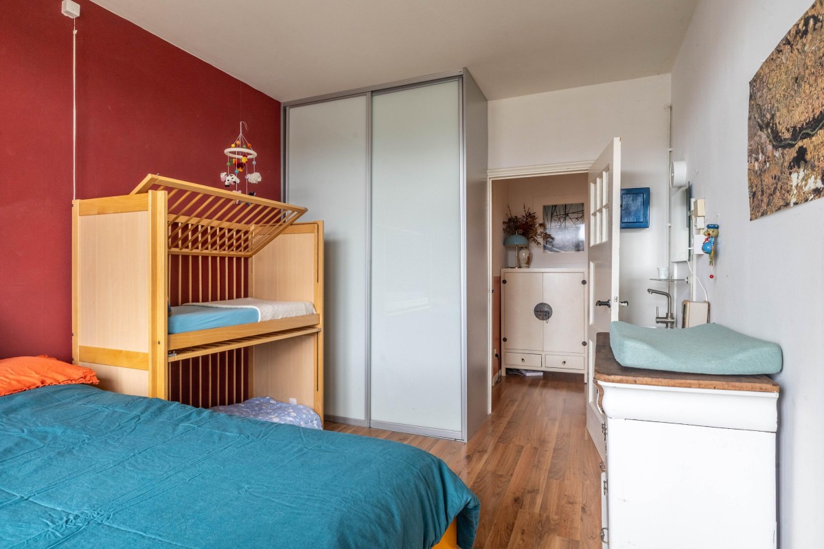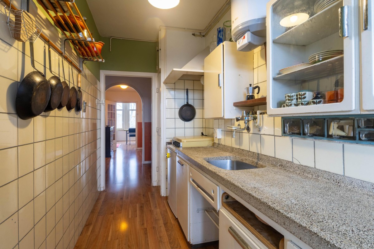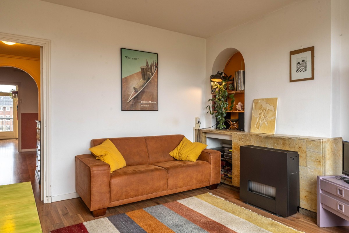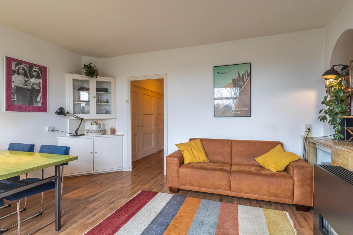 From a neat entrance, you reach the apartment on the third floor via a spacious staircase. Upon entering, you come into the central hallway, which provides access to various rooms. This hallway also offers plenty of storage space, ideal for storing belongings. At the front of the building, you’ll find the bright living room, which, thanks to the large windows, offers a stunning view of Vondelpark, giving this home a unique character.