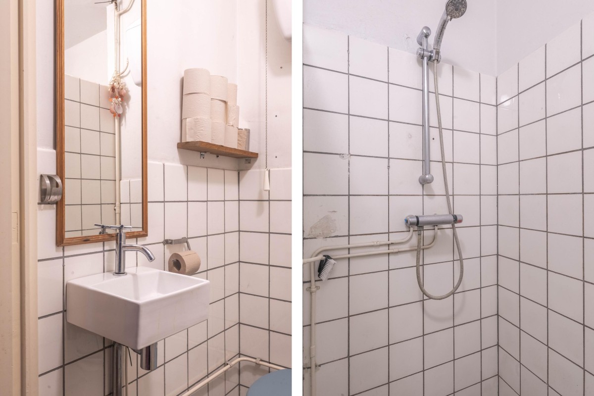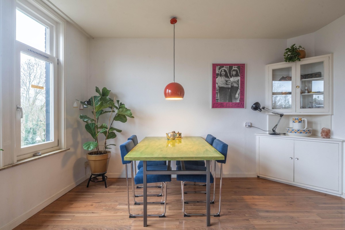 At the rear of the building, you will find the authentic kitchen and the bedroom. Both spaces have access to the balcony, which is southwest-facing, allowing you to enjoy the sun from noon until evening, with a beautiful view over the Schinkel and its attractive maritime traffic.