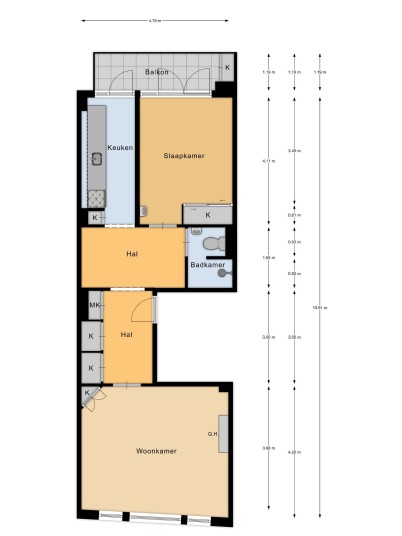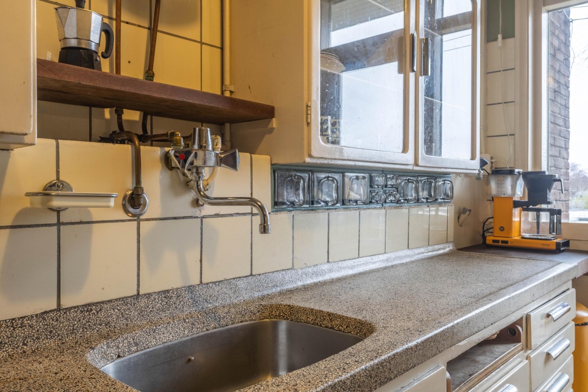 Aan de achterzijde van het pand vindt u de authentieke keuken en de slaapkamer. Beide ruimtes bieden toegang tot het balkon, dat op het zuid-westen is gelegen, waardoor u hier heerlijk vanaf het middaguur tot in de avond kunt genieten van de zon met een prachtig uitzicht over de Schinkel met haar aantrekkelijke scheepvaart.