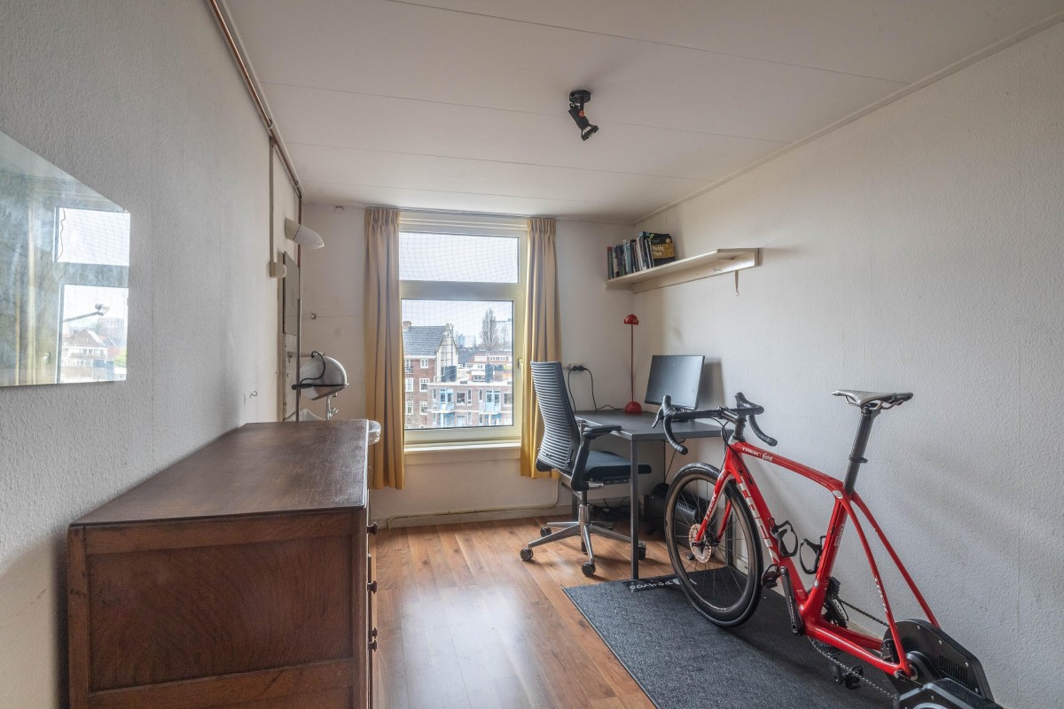 Tot slot beschikt het appartement over een werkkamer op de zolderverdieping. Deze ruimte is voorzien van een wastafel, waardoor deze voor diverse doeleinden kan worden gebruikt. Daarnaast is er op dezelfde etage een kleine berging, waar de aansluiting voor de wasmachine zich bevindt. Tevens bevindt zich op deze verdieping een gemeenschappelijk toilet dat ook kan worden gebruikt door de overige bewoners van het pand.