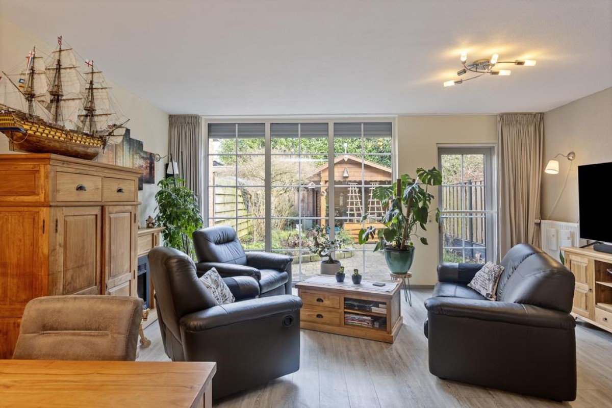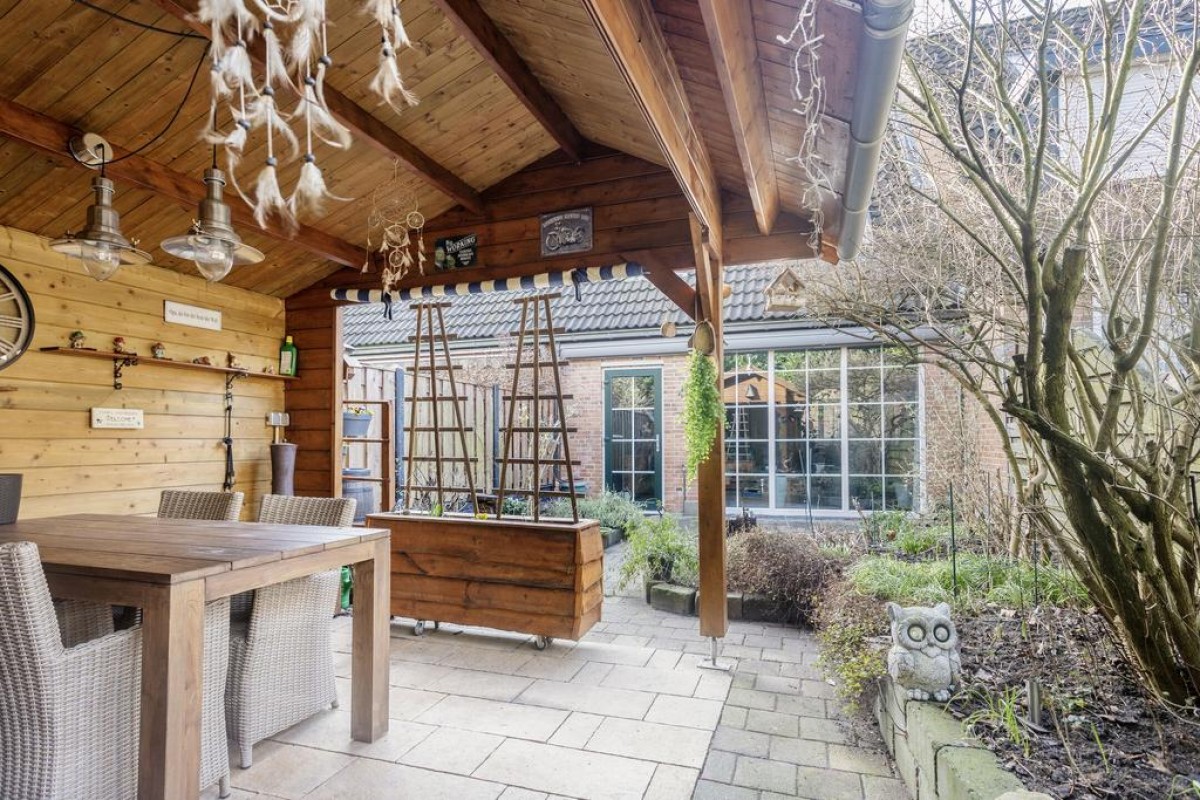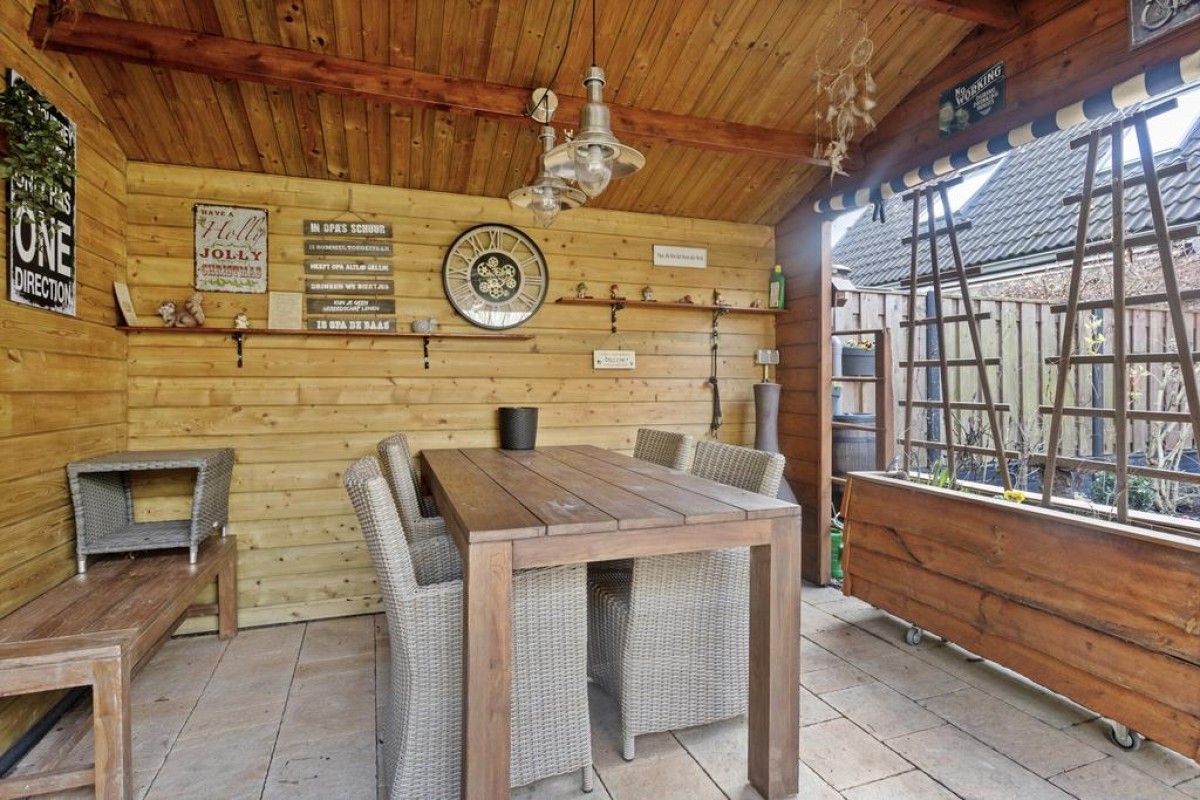 De buitenruimte: Deze bestaat uit een voor- en achtertuin met achterom met een ligging op het noordoosten en voorzien van een kapschuur met een fraaie overkapping. Aan de voorzijde heeft de woning een eigenparkeerplaats. Dit geheel ligt op een mooi perceel van maar liefst 172m2.