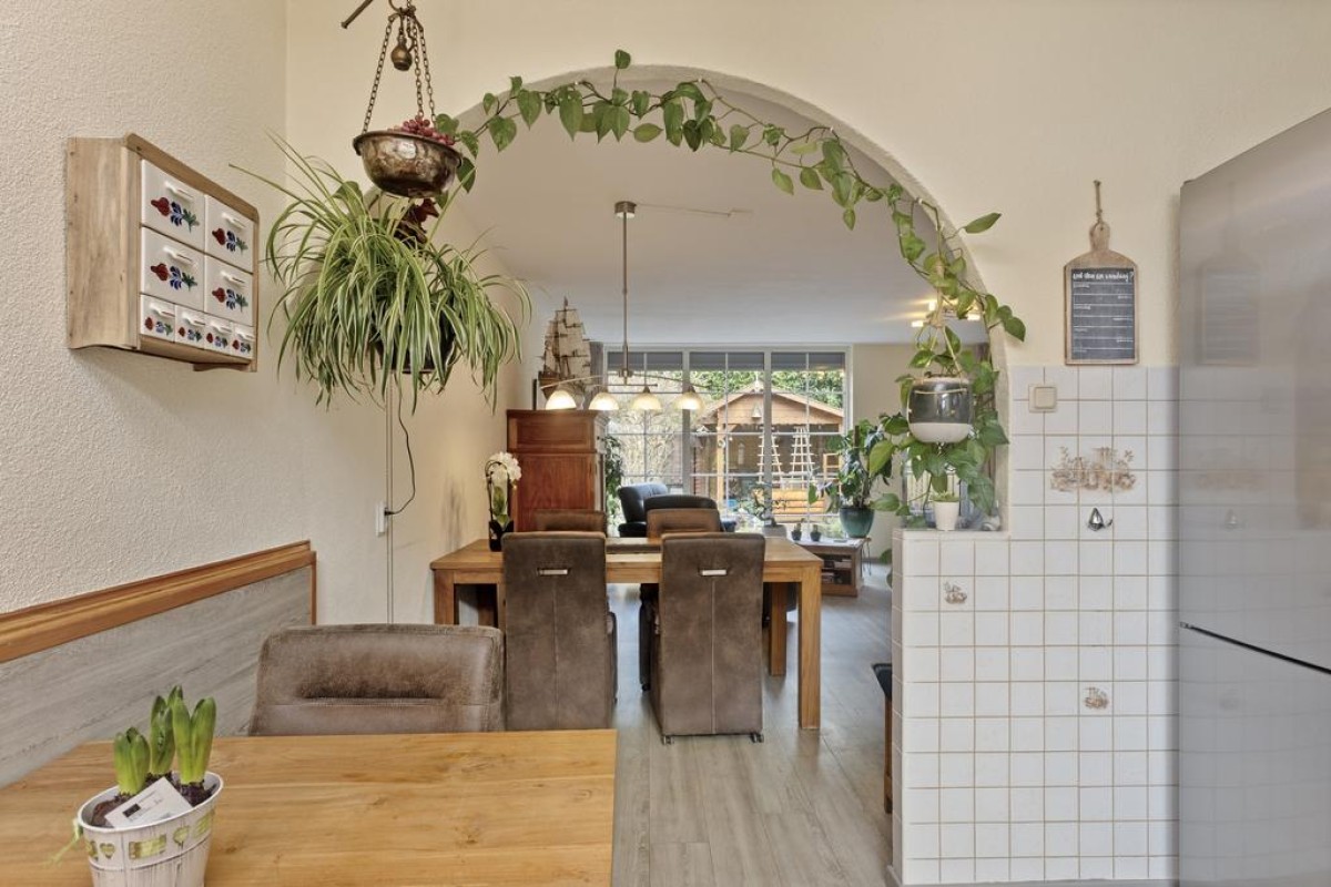 Begane grond: entree met meterkast (2022 ), binnendoor naar de berging aan de voorzijde, toilet met fonteintje en de trapopgang naar de verdieping, toegang tot de woonkamer. De woonkamer heeft een tuingerichte ligging. De open keuken (2021) is ingericht met een hoekopstelling en heeft een leuk straatuitzicht. De keuken is voorzien van een inductiekookplaat, oven, een magnetron, en een losse koelkast. . Op de begane grond ligt een fraaie PVC vloer met vloerverwarming.