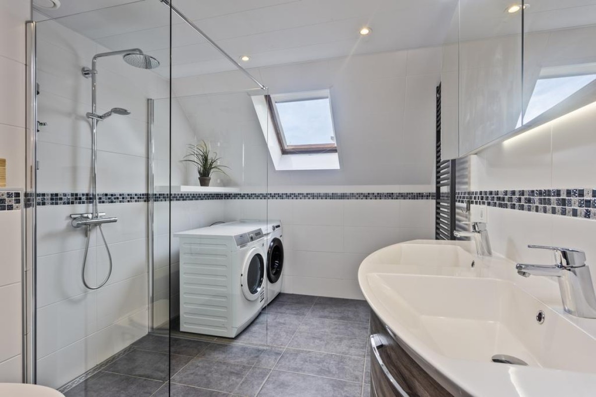 1e verdieping: overloop met toegang tot de 3 ruime slaapkamers en de badkamer. De royale badkamer is volledig betegeld en is compleet uitgerust met een douchehoek, 2e toilet en een wastafelmeubel.