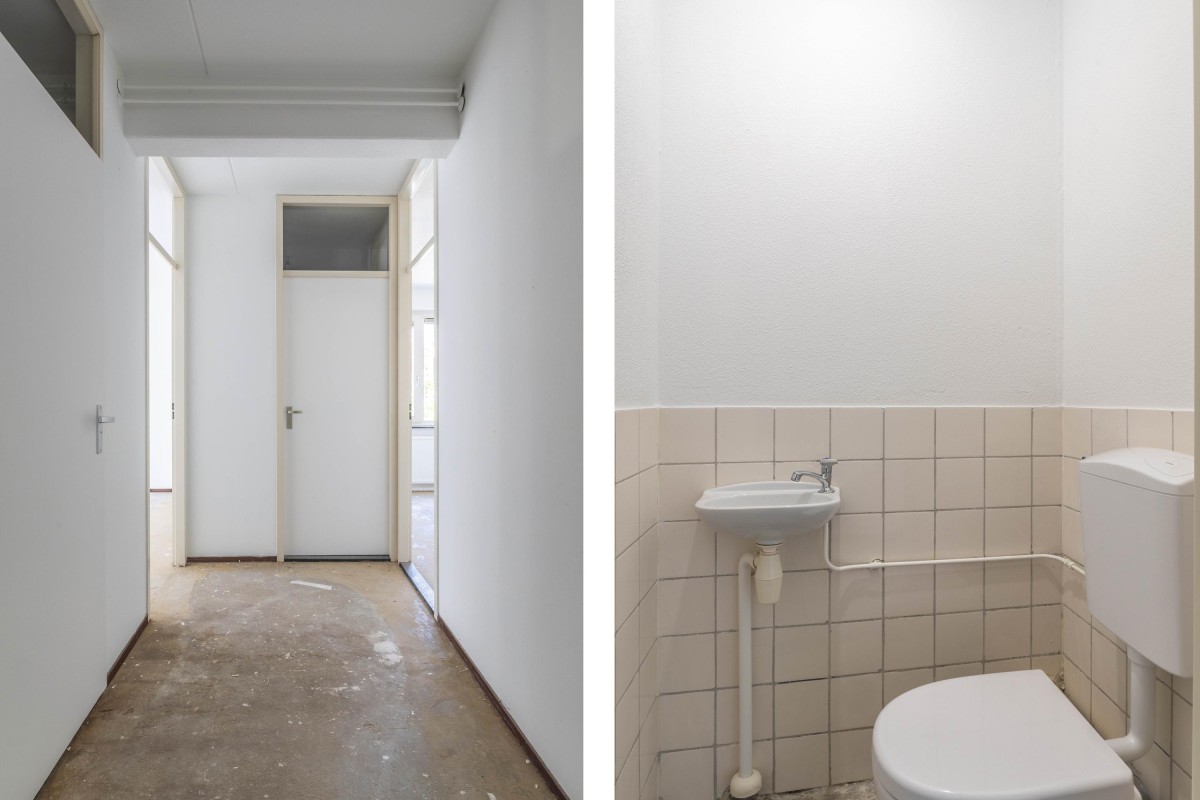 Via de gemeenschappelijke entree neemt u de trap naar de tweede verdieping, waar dit appartement is gelegen. U komt binnen in een hal die toegang biedt tot meerdere vertrekken. Aan de achterzijde bevinden zich twee slaapkamers, beide van goed formaat en met veel lichtinval.