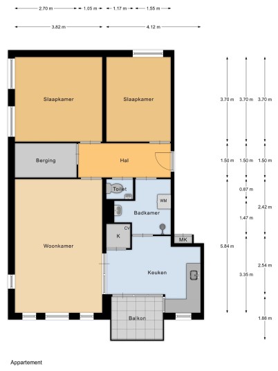 Op de begane grond beschikt het appartement over een externe berging van 5,8 m² met elektra-aansluiting, gemeten conform het NEN2580-meetcertificaat.