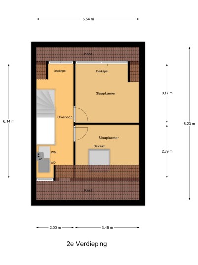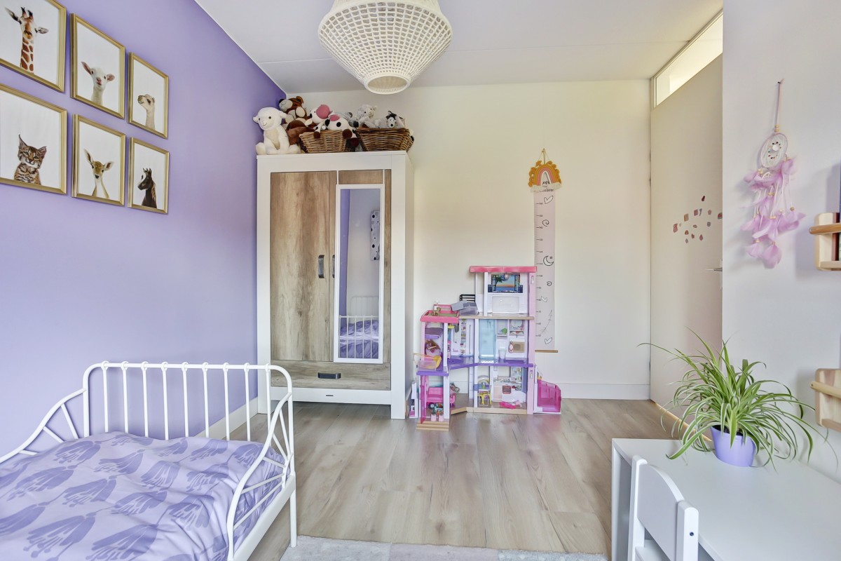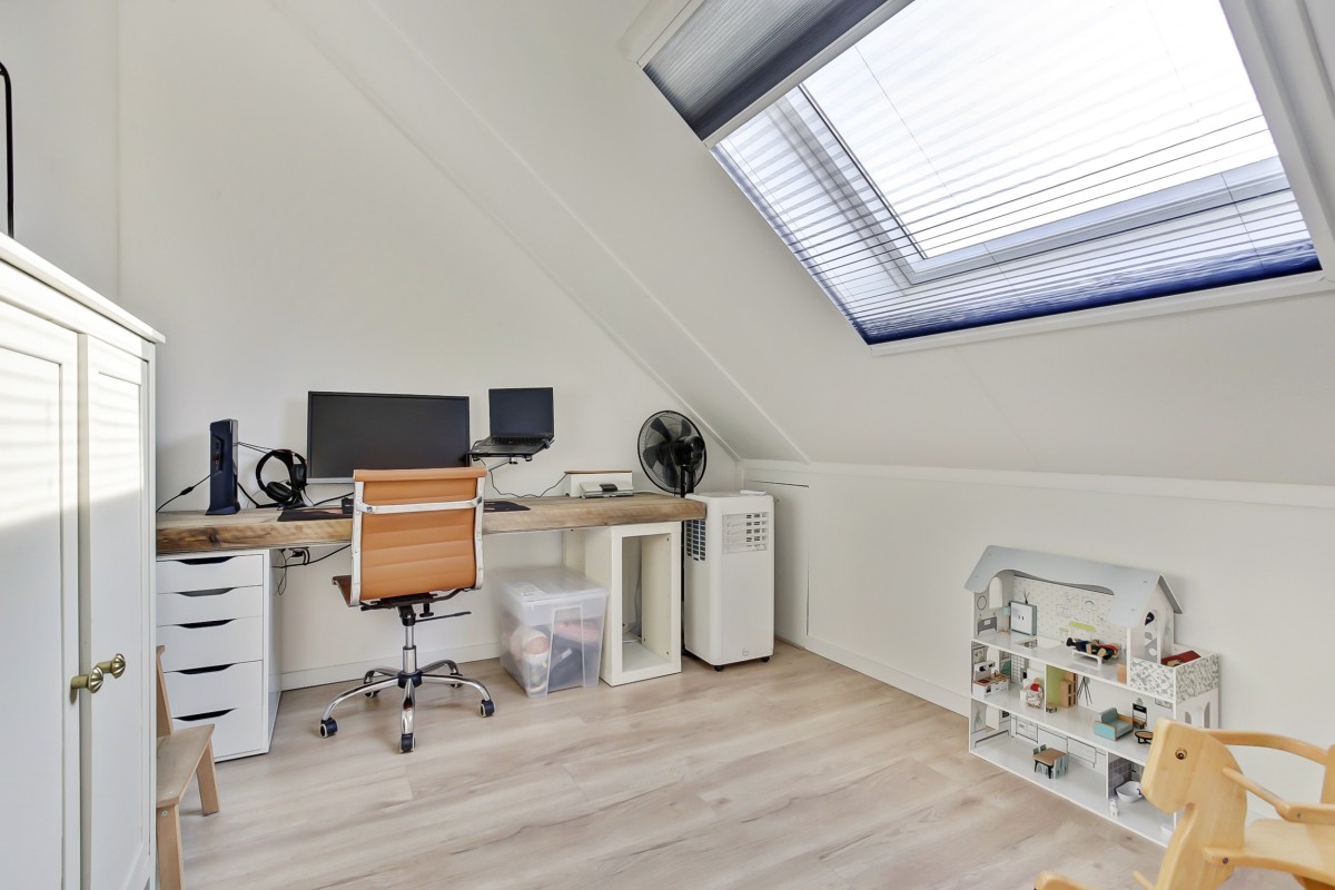 Tweede verdieping: vaste trap naar de lichte voorzolder waar de wasmachine, droger, mechanische ventilatie en c.v.-ketel (Intergas HR 2023) staan opgesteld. Achter de knieschotten is de nodige bergruimte beschikbaar. Aan de voorzijde van de woning is een mooie 4e slaapkamer aanwezig welke voorzien is van een Velux dakraam en aan de achterzijde is een 5e slaapkamer met ruime dakkapel (2022) aanwezig. De slaapkamers en overloop op de tweede verdieping zijn voorzien van een laminaatvloer.