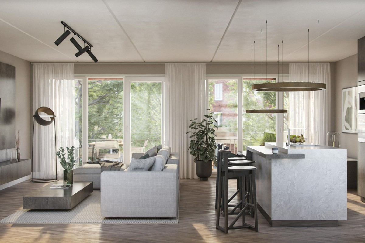 De herenhuizen en appartementen zijn energiezuinig en voldoen aan de normen van BENG (Bijna EnergieNeutrale Gebouwen). Ze zijn voorzien van een warmtepomp in combinatie met vloerverwarming in de hele woning. Op de daken liggen – uit het zicht – zonnepanelen. Omdat alles nieuw en netjes is, heb je de eerste tien jaar vrijwel geen onderhoudskosten.