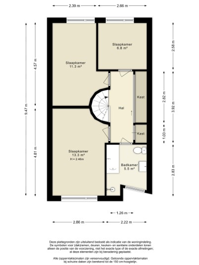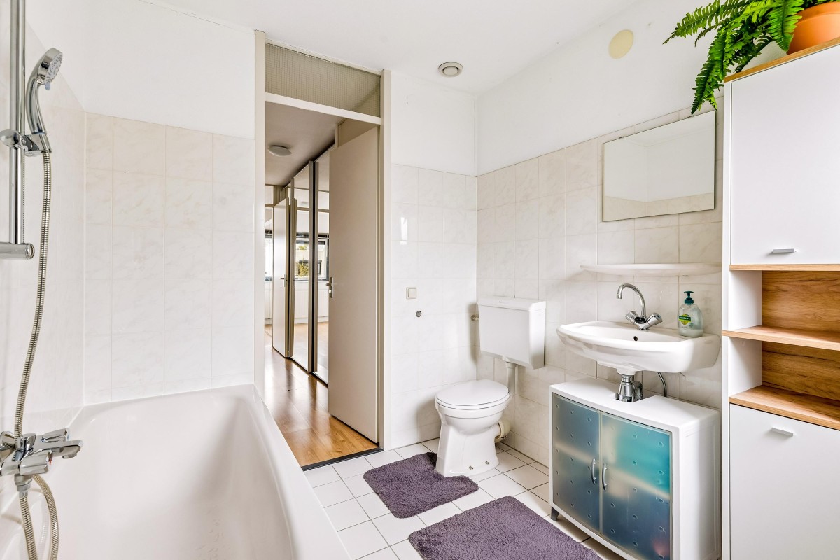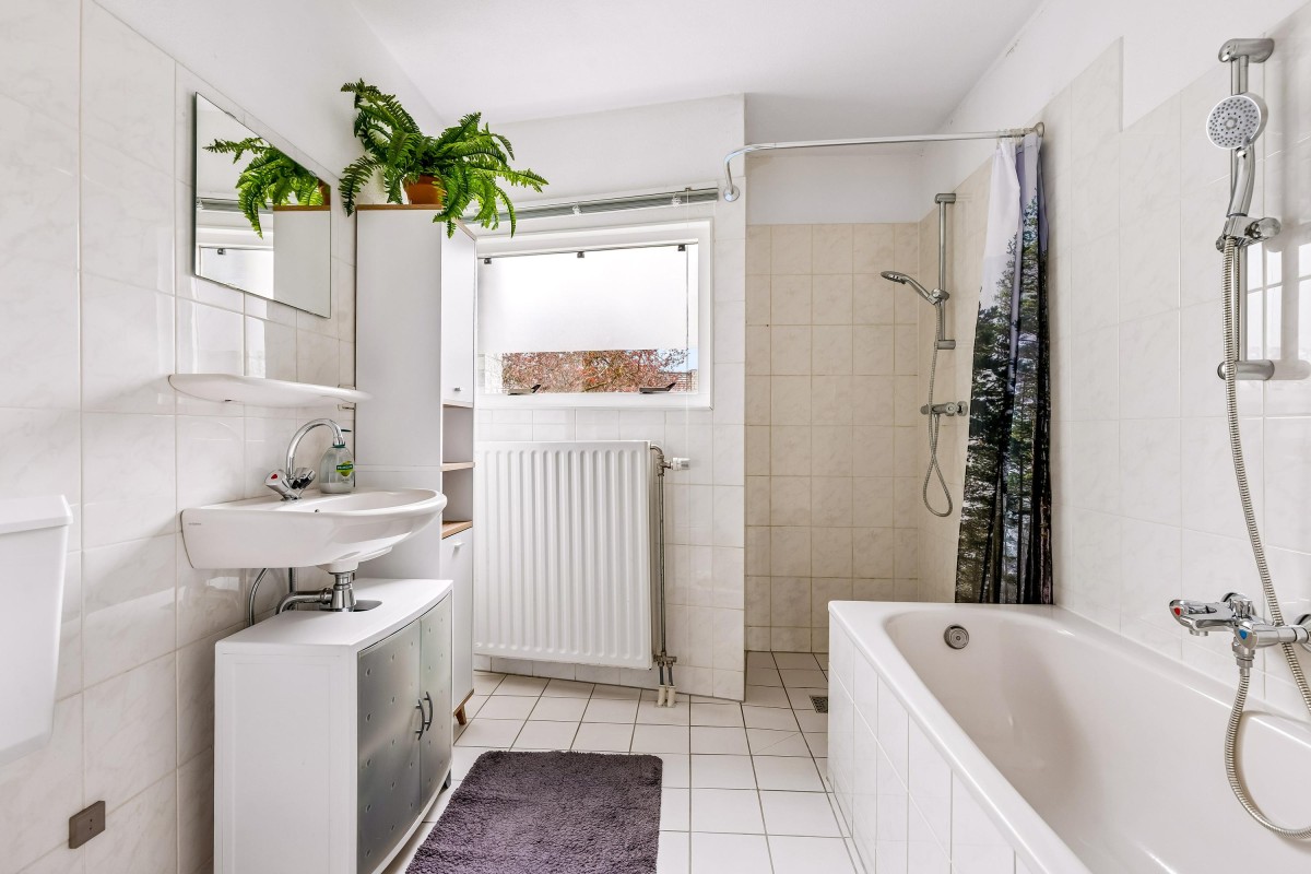 De badkamer is betegeld tot aan het plafond en uitgerust met een ligbad, inloopdouche, toilet, wastafel en een raam voor natuurlijke ventilatie. In de separate wasruimte bevinden zich de aansluiting voor de was droogcombinatie en de mechanische ventilatie unit. De slaapkamers en overloop zijn voorzien van een nette laminaatvloer.