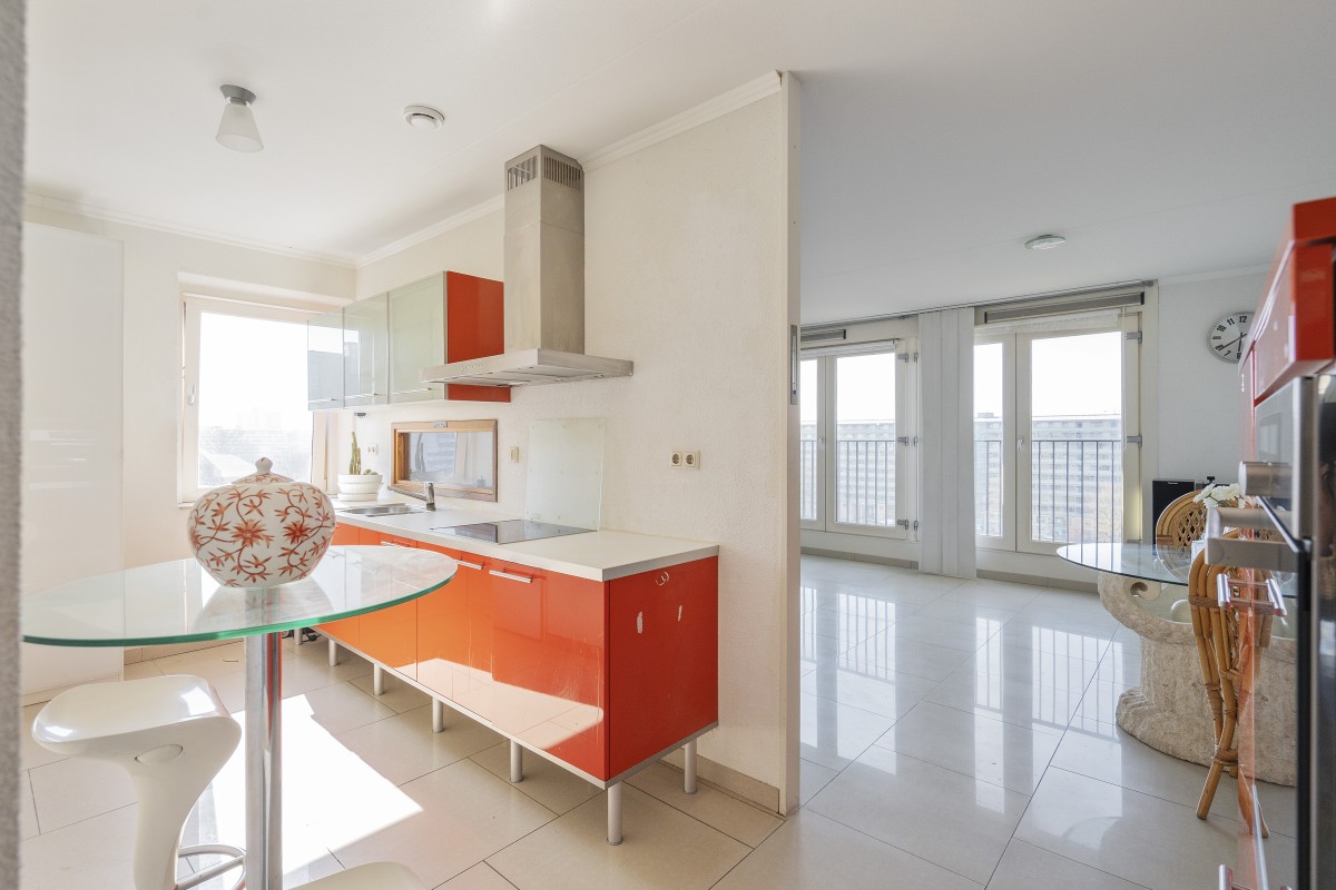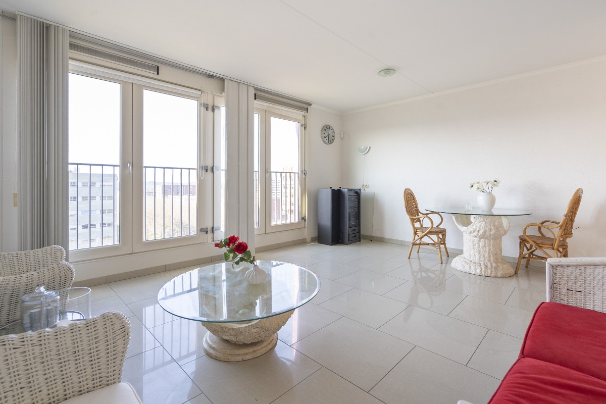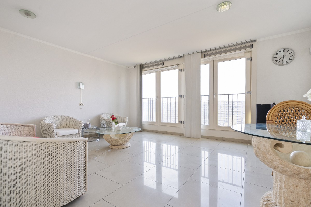 This comfortable apartment is located on the 8th floor of a well-maintained apartment complex in the dynamic Amsterdam-Zuidoost district. Thanks to its corner location and numerous windows, the home enjoys a pleasant amount of natural light and a spacious feel. The property is ideal for singles or couples looking for a nice home with space, comfort, and excellent accessibility. The bright living room forms the heart of the home and is semi-open to the kitchen.
