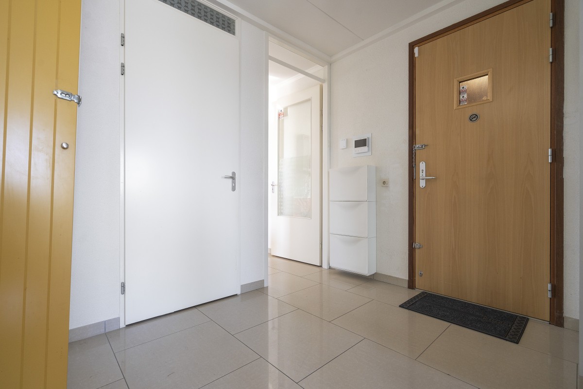 De woning is volledig gelijkvloers. Entree via de hal met videofooninstallatie en toegang tot alle vertrekken. De woning beschikt over twee goed bemeten slaapkamers, ideaal als hoofdslaapkamer en bijvoorbeeld een kinder-, werk- of logeerkamer. De woning is voorzien van vloerverwarming.