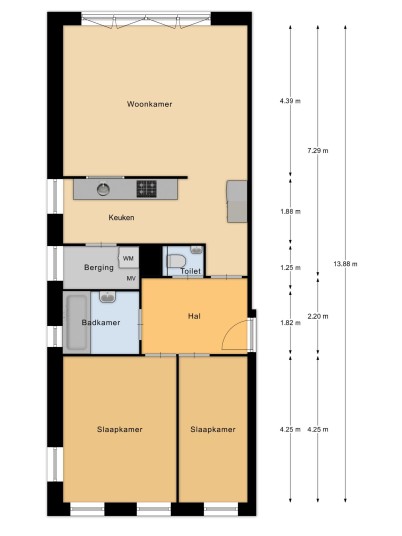 - 3-kamerappartement met 2 slaapkamers;