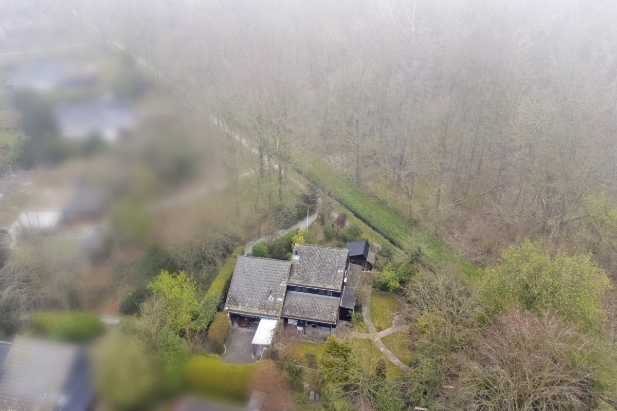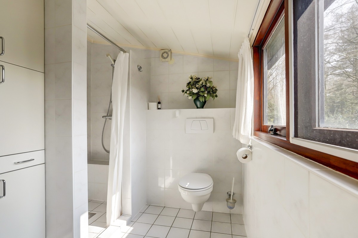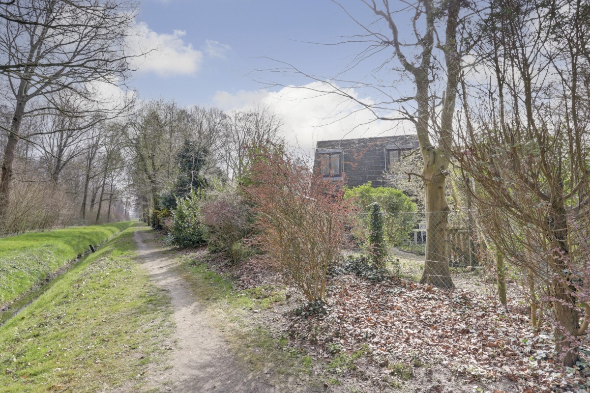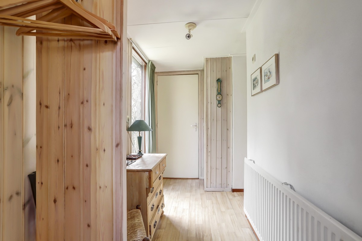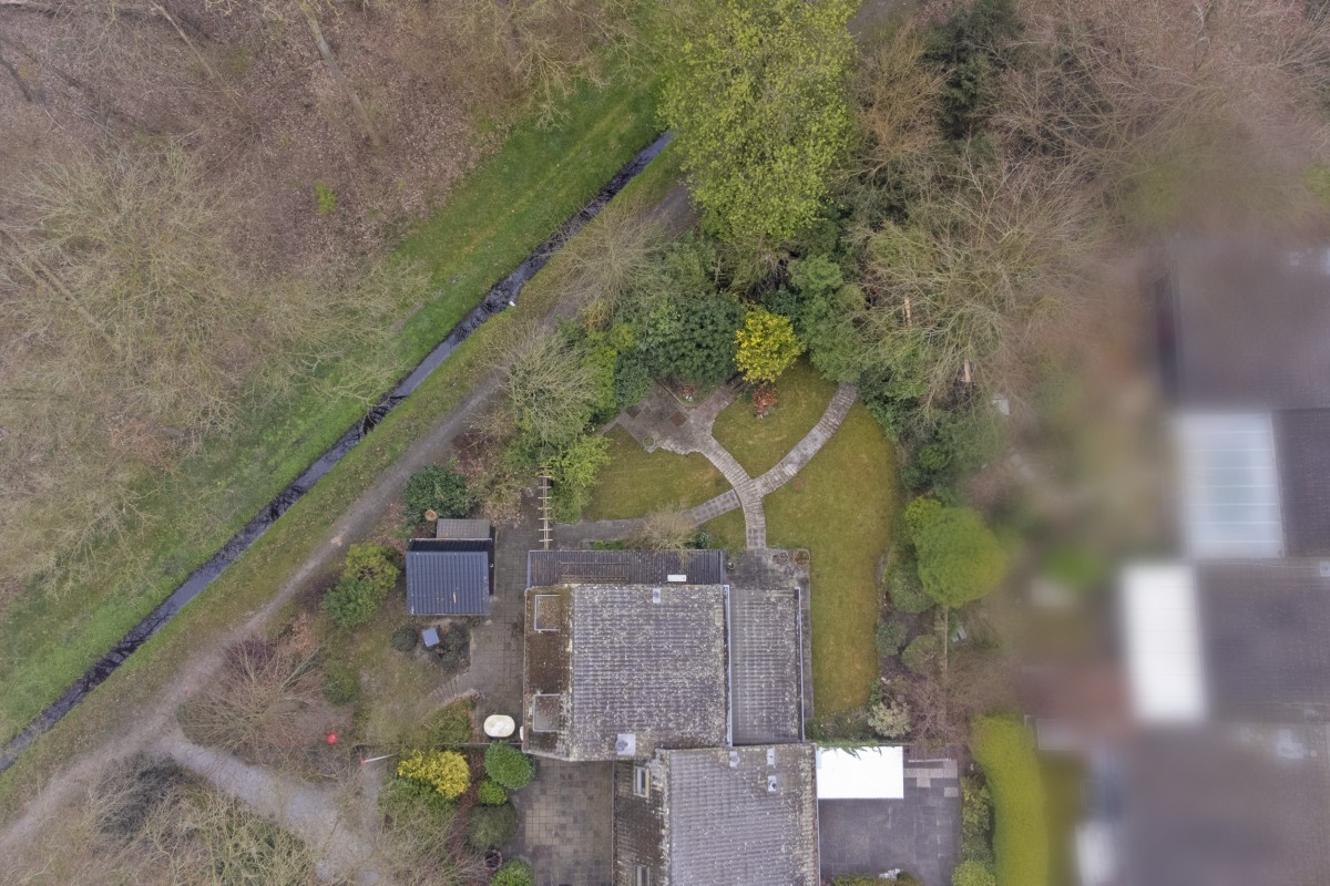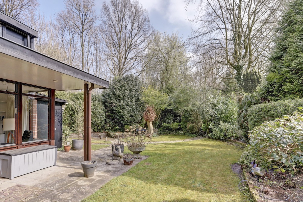 Zowel aan de voorzijde van de woning alsmede aan de achterzijde van de woning biedt een loopdeur toegang naar het perceel. De voortuin is als bostuin aangelegd met een toegangshek vanuit het wandelpad van en naar het het bos. Tevens is hier een vrijstaande houten kapschuur aanwezig. Langs de woning is de zij- en achtertuin bereikbaar welke vriendelijk aangelegd is met een gazon, perkjes en een heus bos aangrenzend. Het zonneterras tegen de achtergevel is overdekt met een riante overkapping. Aan de achterzijde is ook vanuit de tuin een aangebouwde berging bereikbaar.