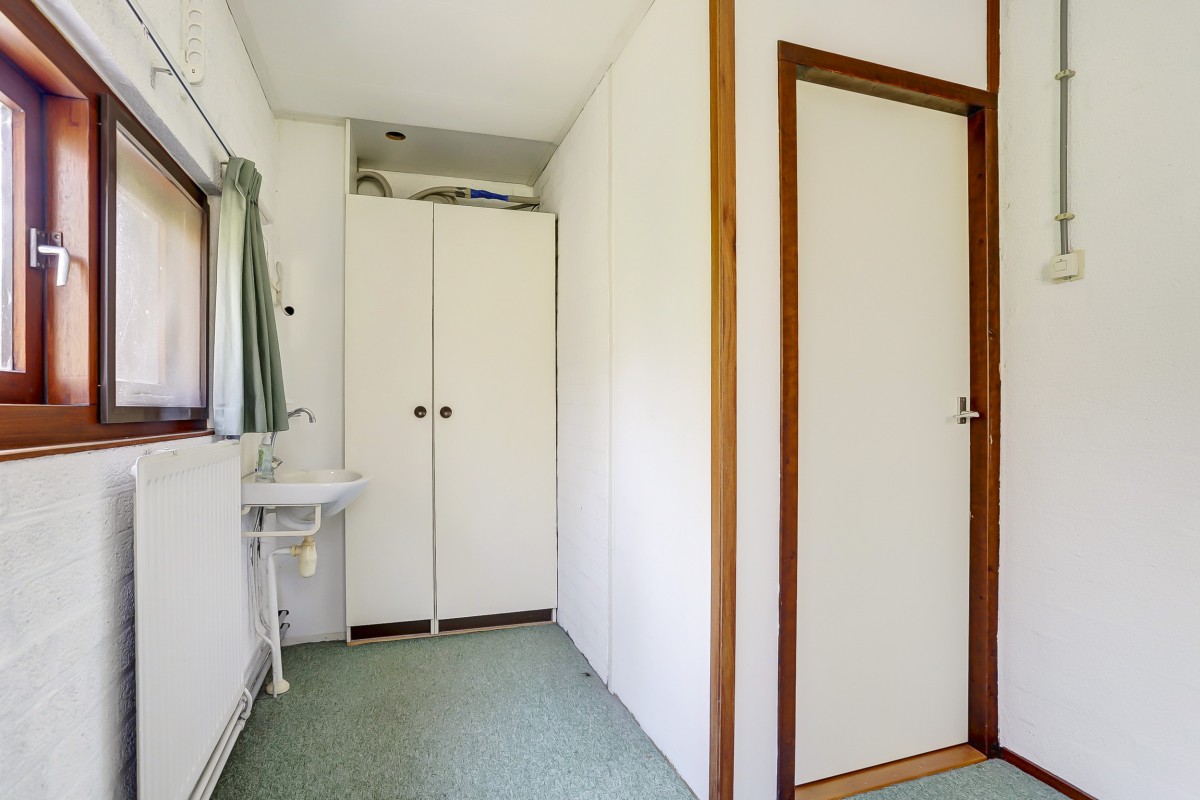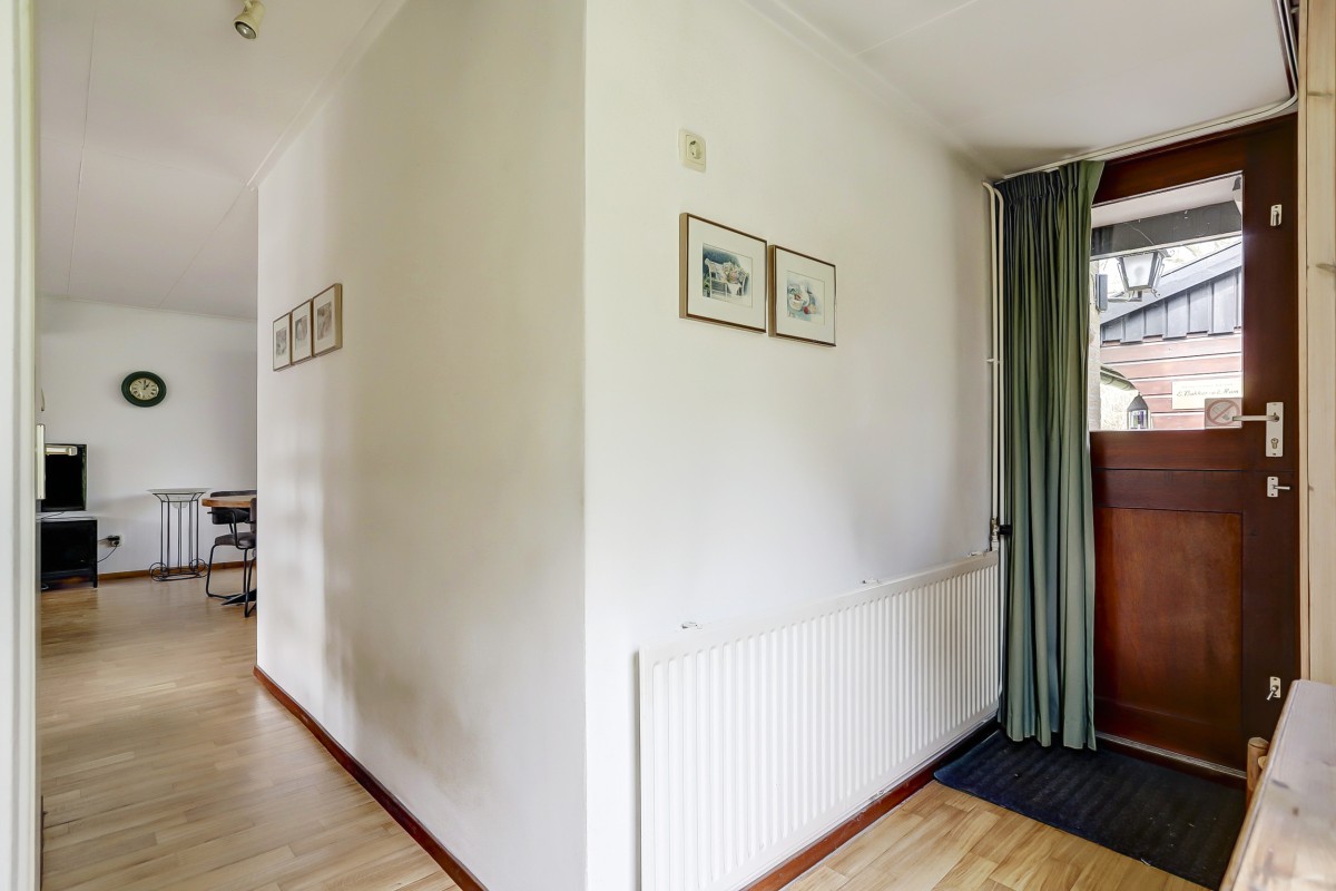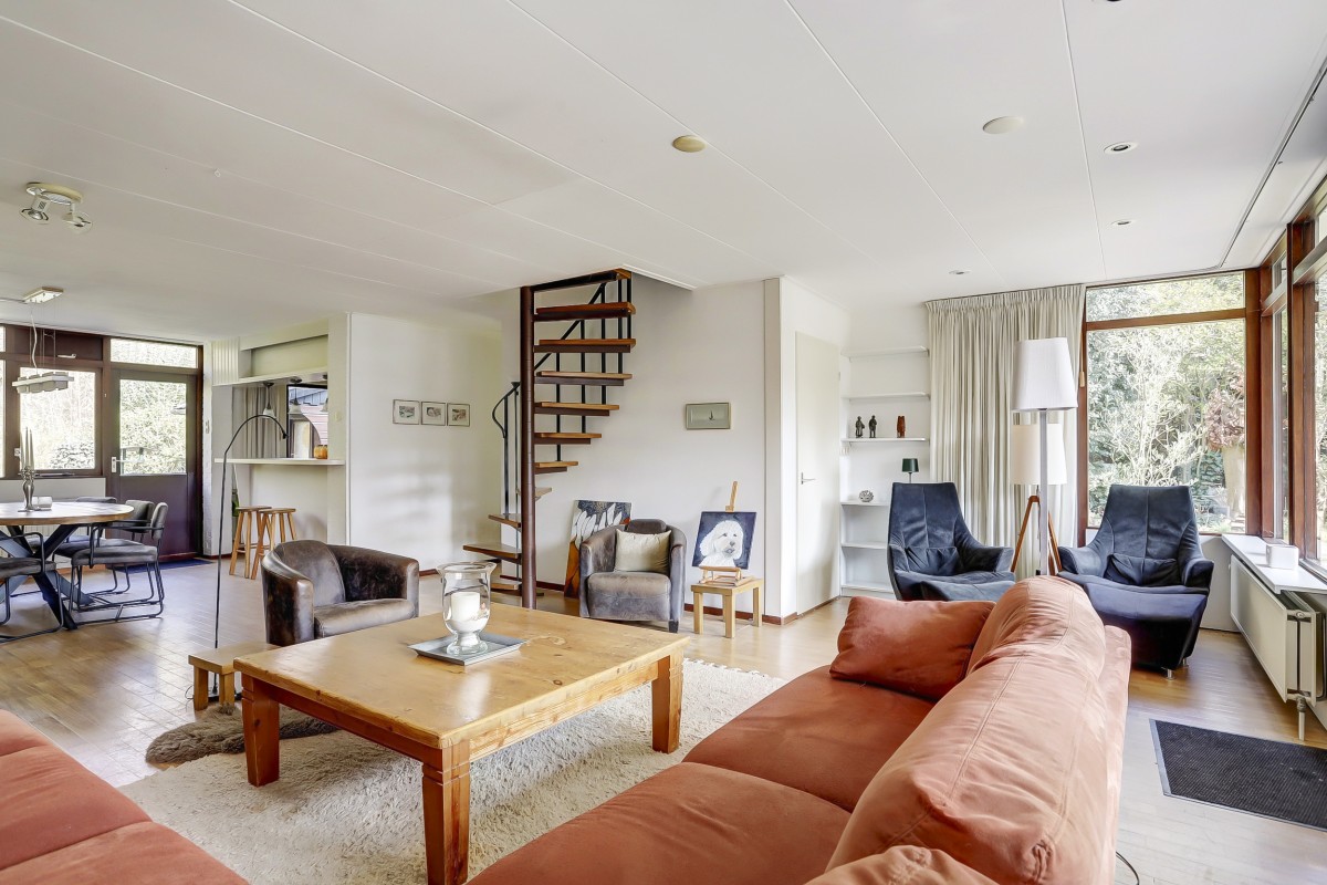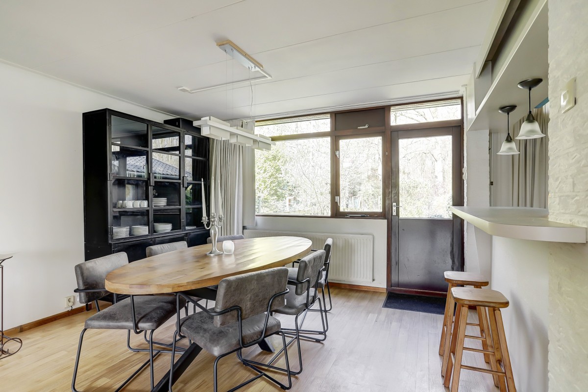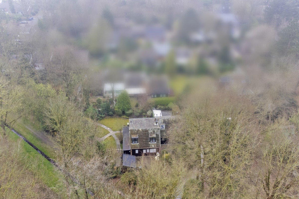 Zowel aan de voorzijde van de woning alsmede aan de achterzijde van de woning biedt een loopdeur toegang naar het perceel. De voortuin is als bostuin aangelegd met een toegangshek vanuit het wandelpad van en naar het het bos. Tevens is hier een vrijstaande houten kapschuur aanwezig. Langs de woning is de zij- en achtertuin bereikbaar welke vriendelijk aangelegd is met een gazon, perkjes en een heus bos aangrenzend. Het zonneterras tegen de achtergevel is overdekt met een riante overkapping. Aan de achterzijde is ook vanuit de tuin een aangebouwde berging bereikbaar.