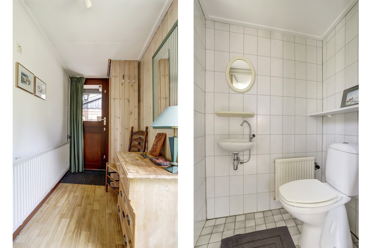 Begane grond: middels een loopdeur is de toegang tot de lichte hal waar de garderobe, toiletruimte en een separate wasruimte gesitueerd zijn.