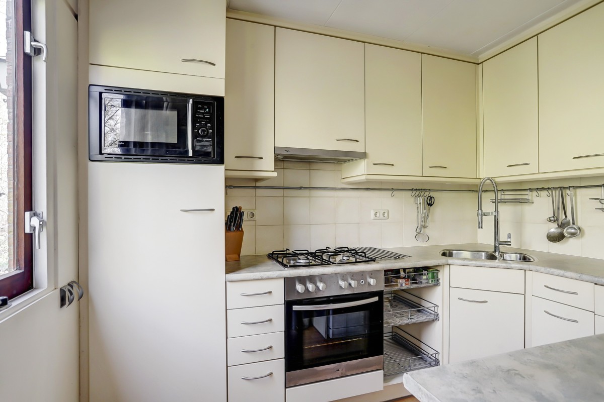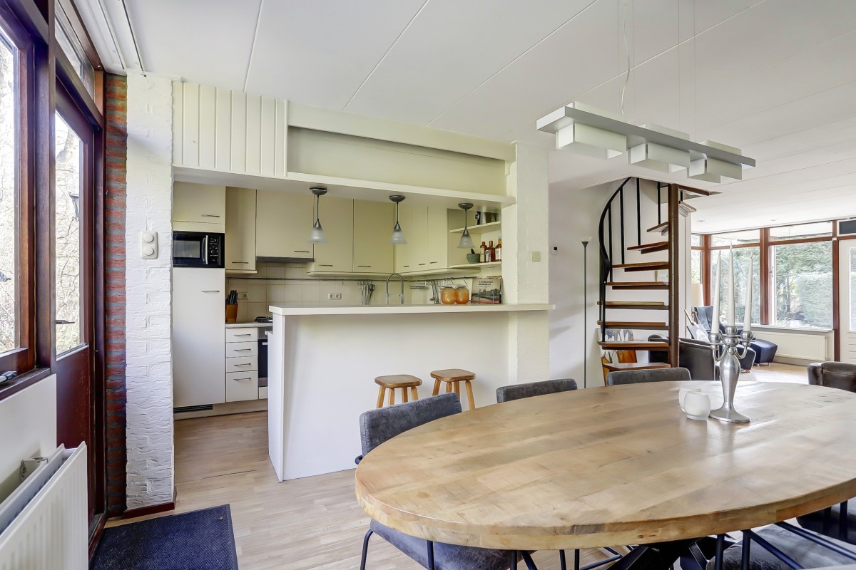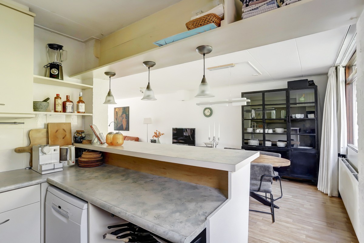 Lees verderDoorgang naar de uitgebouwde tuigerichte woonkamer. Aan de voorzijde van de woning is een brede eethoek gelegen met aansluitend een eetbar en de keuken. De lichte keuken is in een u-vorm opgesteld en voorzien van veel kastruimte, een groot werkblad met bar en ingebouwde koelkast, magnetron, oven, gaskookplaat en vlakscherm afzuigkap. Onder het aanrechtblad is voor het gemak ook een losse vaatwasser aanwezig.