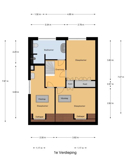 Tweede verdieping: boven 2 slaapkamers is een bergzolder aanwezig.