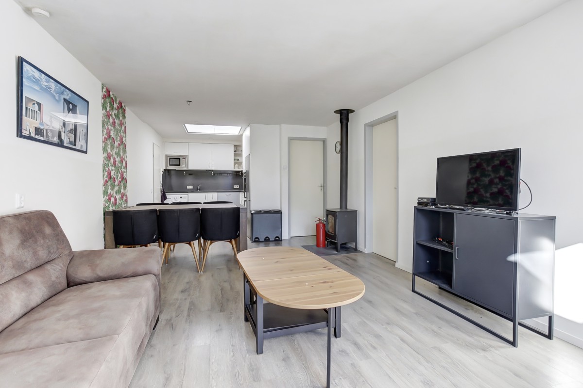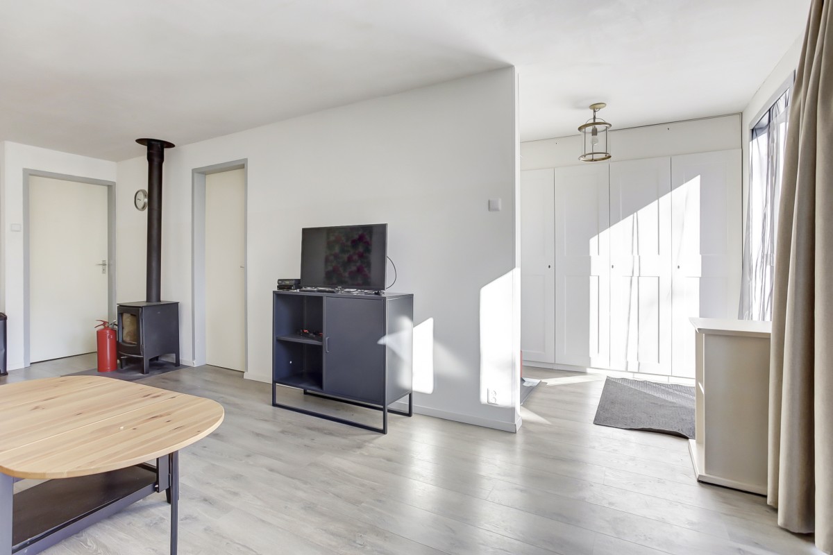 Entree middels loopdeur naar de hal met vaste kastenwand, doorgang naar de lichte en comfortabel uitgebouwde woonkamer welke beschikt over uitzicht op de tuin. De gehele woning beschikt over een laminaatvloer evenals vlakke wanden en plafonds. De woonkamer beschikt over een houtkachel en openslaande tuindeuren, een eethoek met aangrenzend de open moderne keuken.