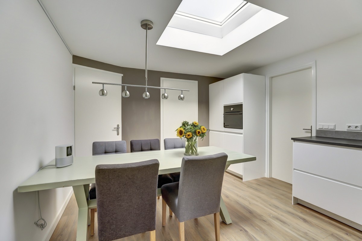 Mede door de lichtkoepel in het dak en de grote glasopeningen beschikt de woning over veel natuurlijk daglicht. De kozijnen zijn voorzien van HR++ glas. De wanden en plafonds van de gehele woning zijn strak gestuukt en de vloeren zijn voorzien van een moderne pvc vloer en grotendeels voorzien van vloerverwarming.