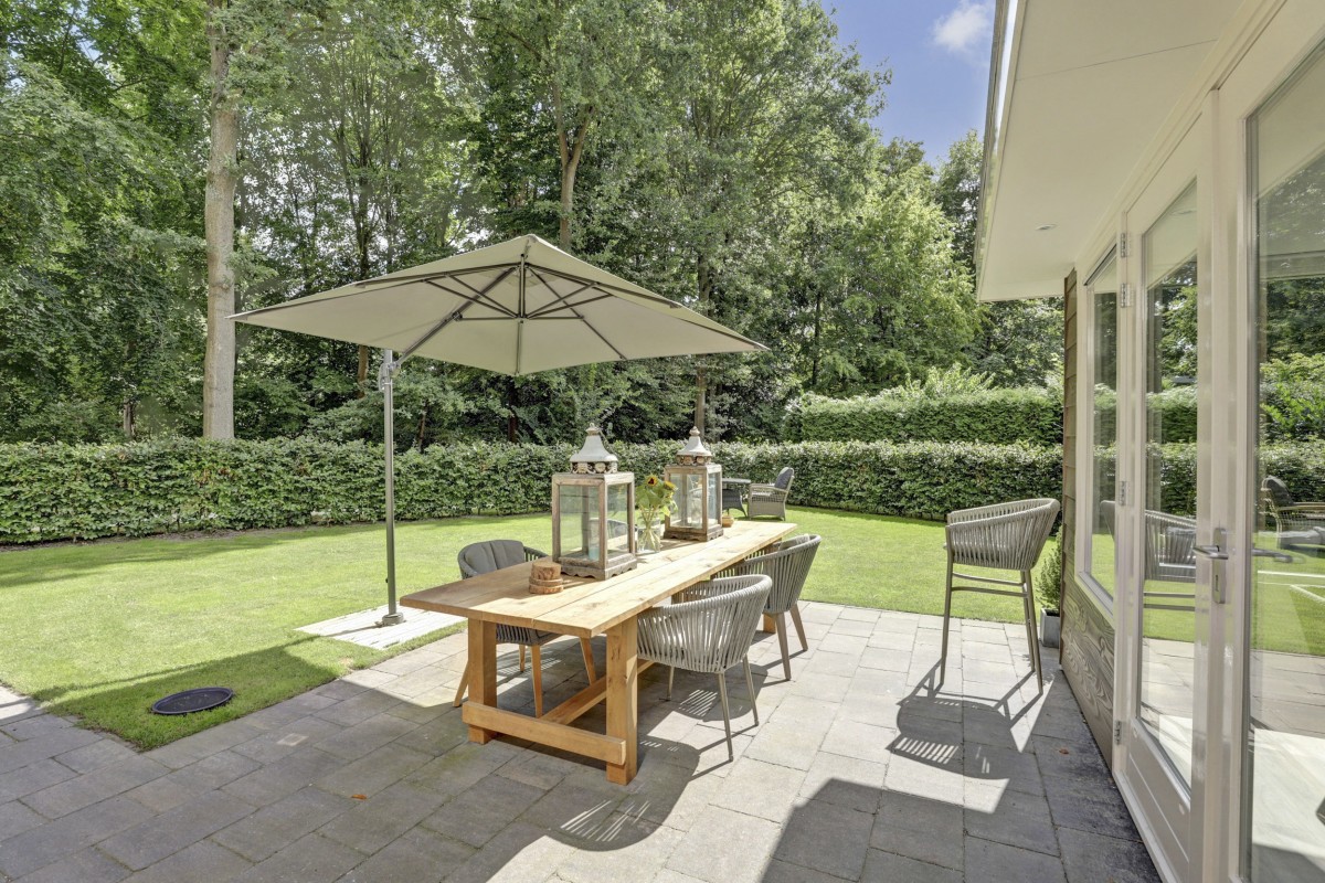 * Ruime zonnige tuin met een fraai terras en gazon