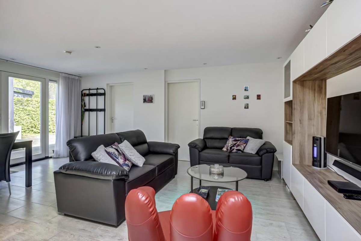 Entree middels openslaande deuren naar de lichte en comfortabel uitgebouwde woonkamer welke beschikt over fraai uitzicht op de tuin. De gehele woning beschikt over een fraaie tegelvloer voorzien van vloerverwarming evenals strak gestuukte wanden en plafonds. De woonkamer beschikt over een garderobe, een ruime lichte living en eethoek met aangrenzend de open luxe keuken.
