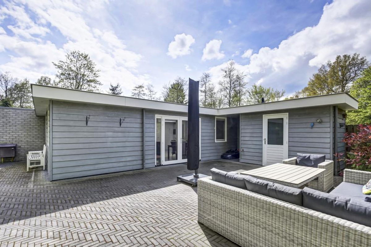 Op het prachtige recreatiepark "De Bremerberg" staat deze moderne uitgebouwde geschakelde recreatiewoning met 3 slaapkamers en ruime zonnige tuin. De bungalow is instapklaar en centraal gelegen nabij alle voorzieningen van het park op een ruim en privacy biedend perceel van 224 m² vlakbij het Veluwemeer.