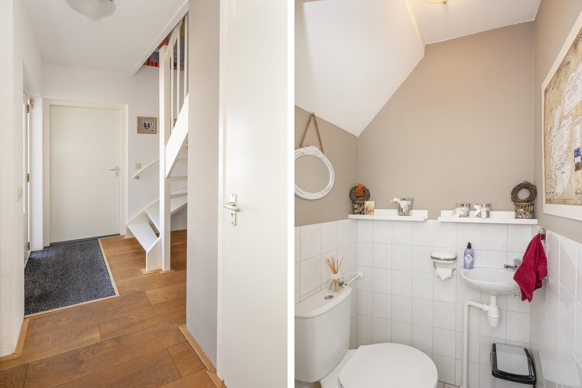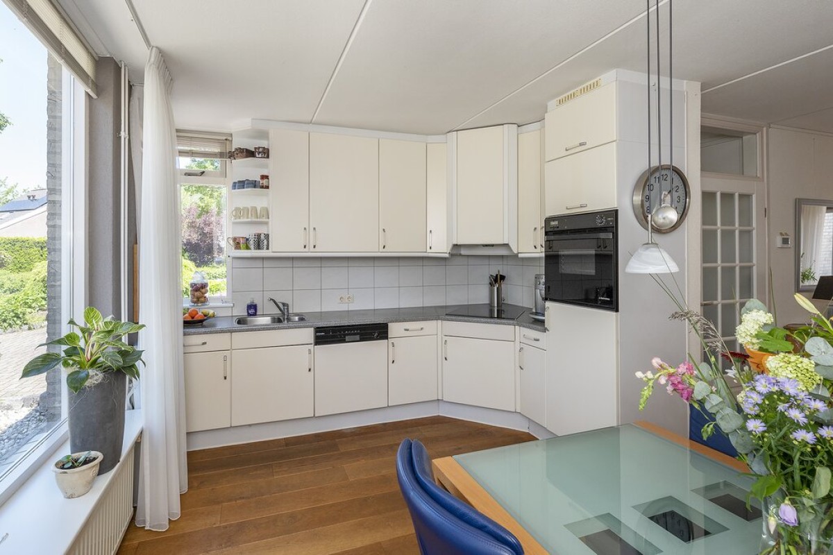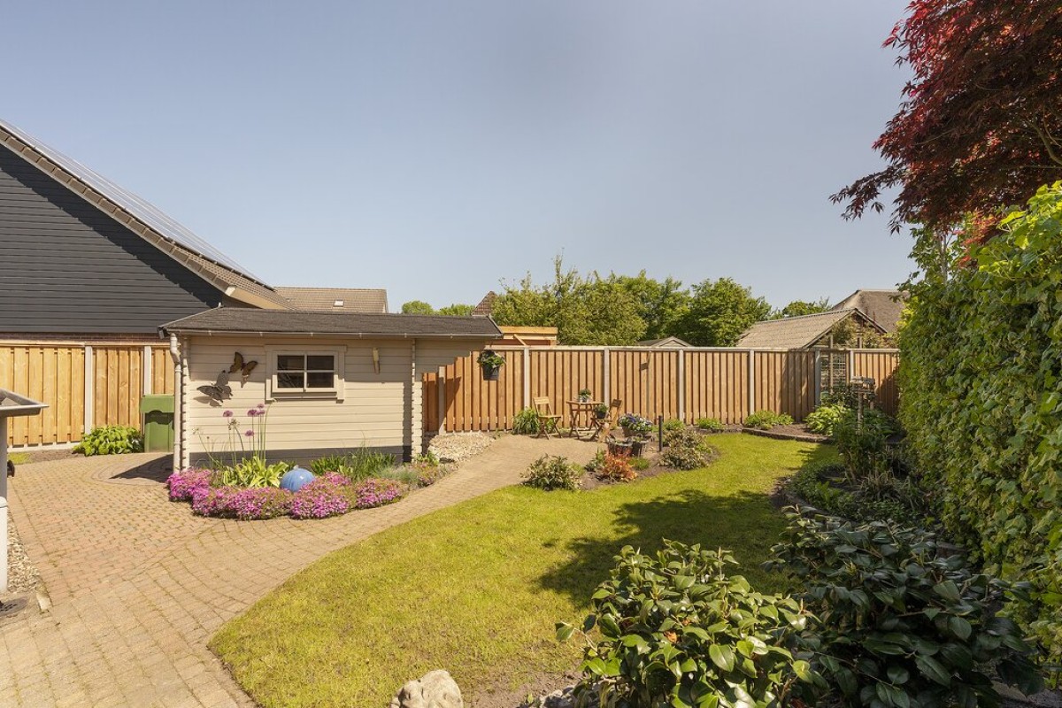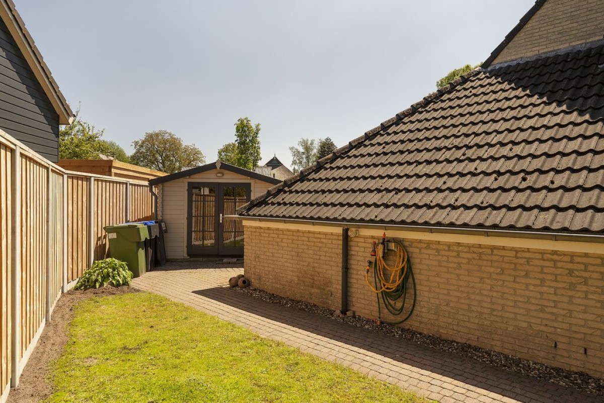 Als je deze woning ziet, valt je gelijk de praktische ruimte op, zoals de extra grote garage met vliering, aaneengesloten de royale bijkeuken met wasmachineaansluiting en de vrijstaande houten berging in de achtertuin.