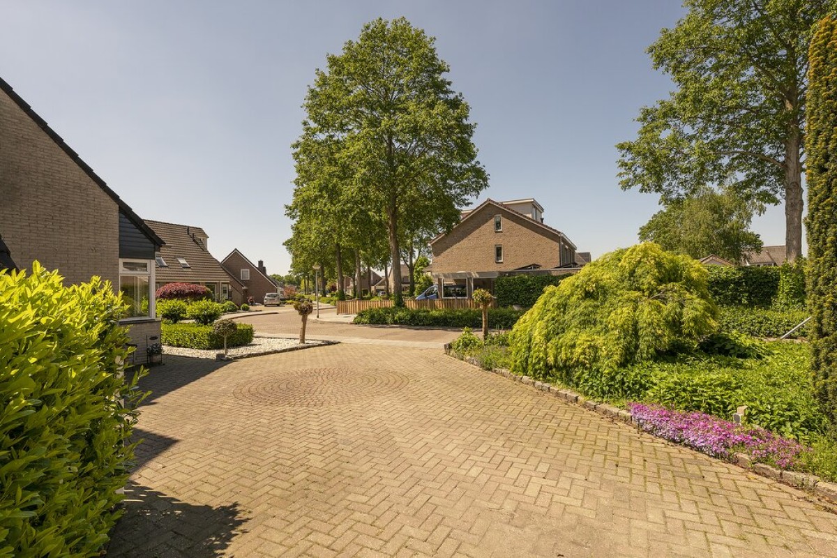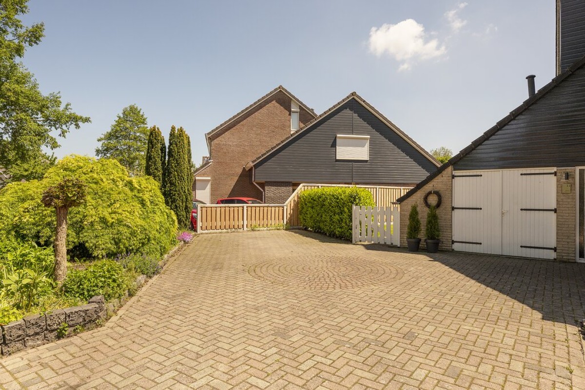 En het begint al bij de bijzonder royale oprit wat ruimte biedt aan minimaal drie auto's. Zowel de voor-/ zij-, als achtertuin zien er verzorgd uit en is speels aangelegd.