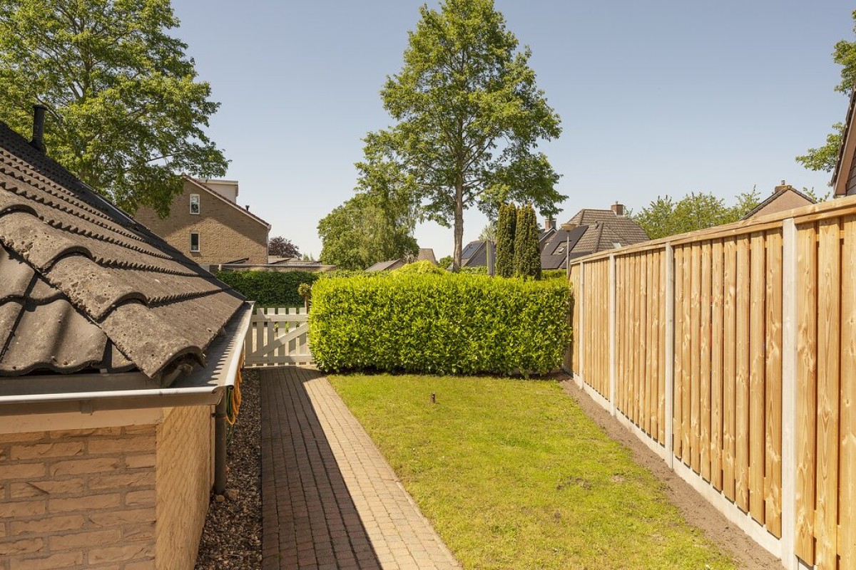 - in februari van dit jaar is de schutting aan de linkerzijde geheel vernieuwd