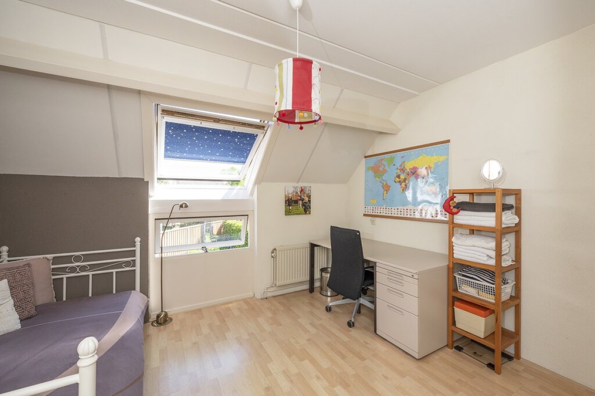 Via een vaste trap is de tweede verdieping te bereiken. Hier kom je op de voorzolder met veel bergruimte en vervolgens is hier nog een leuke derde slaapkamer gerealiseerd.