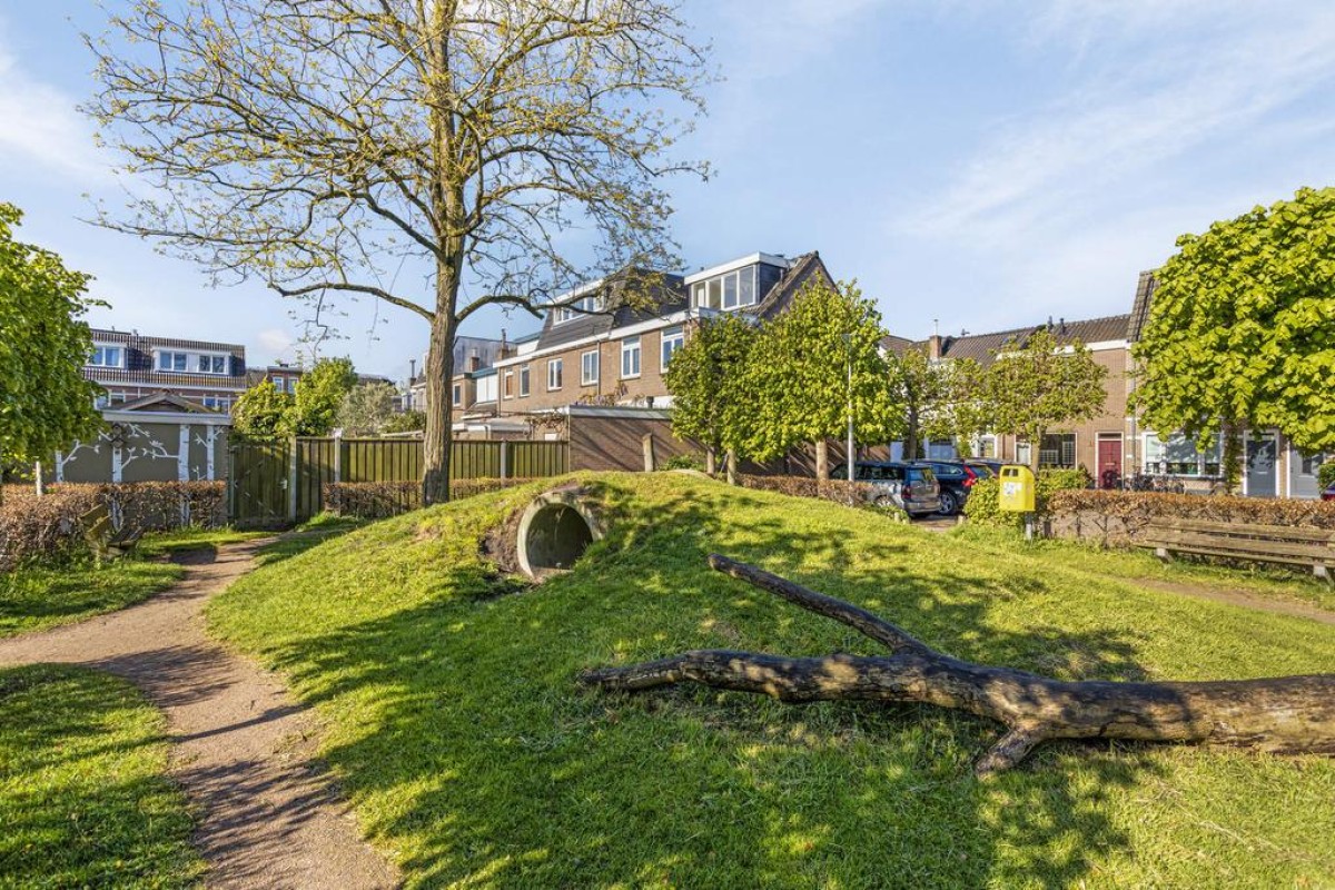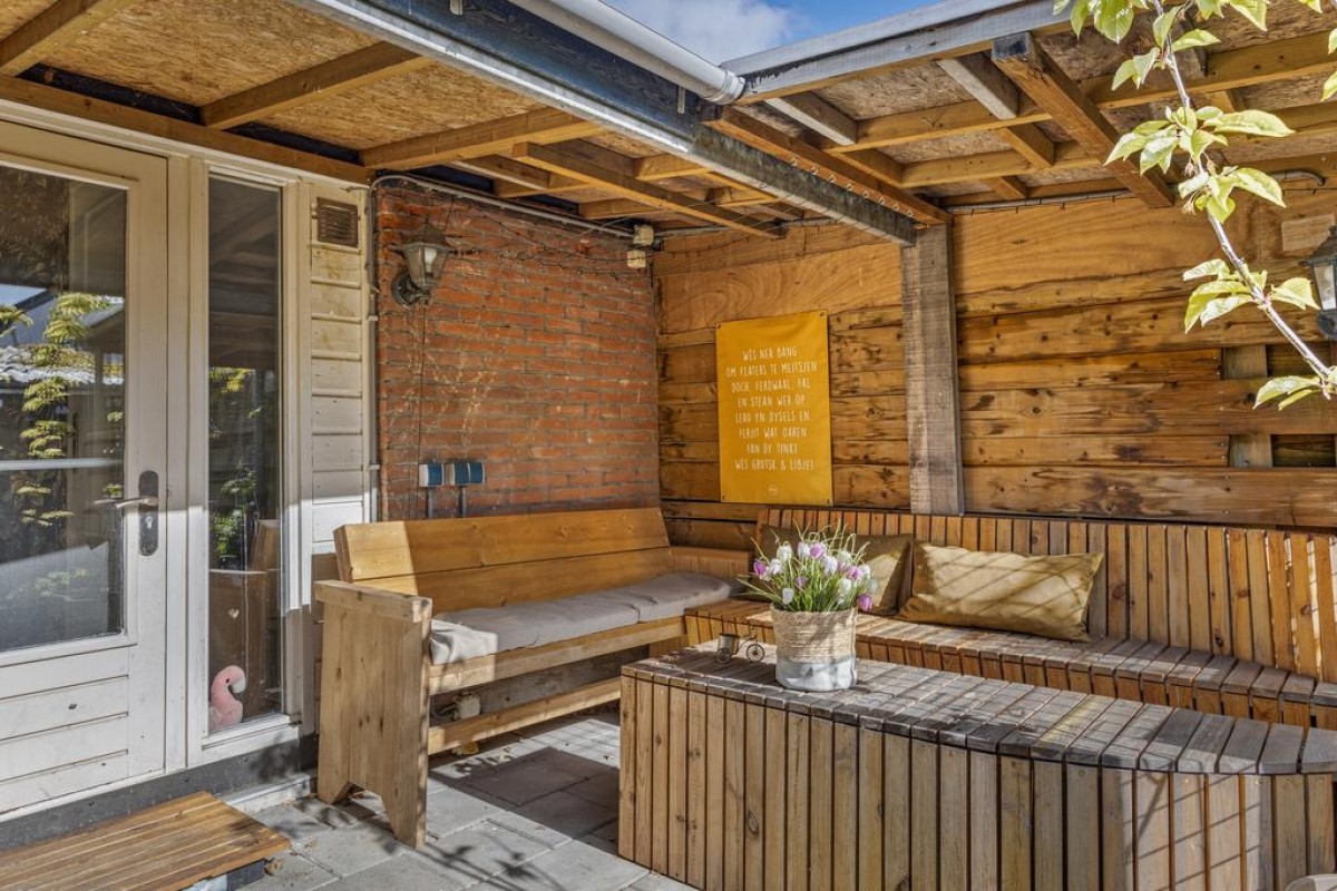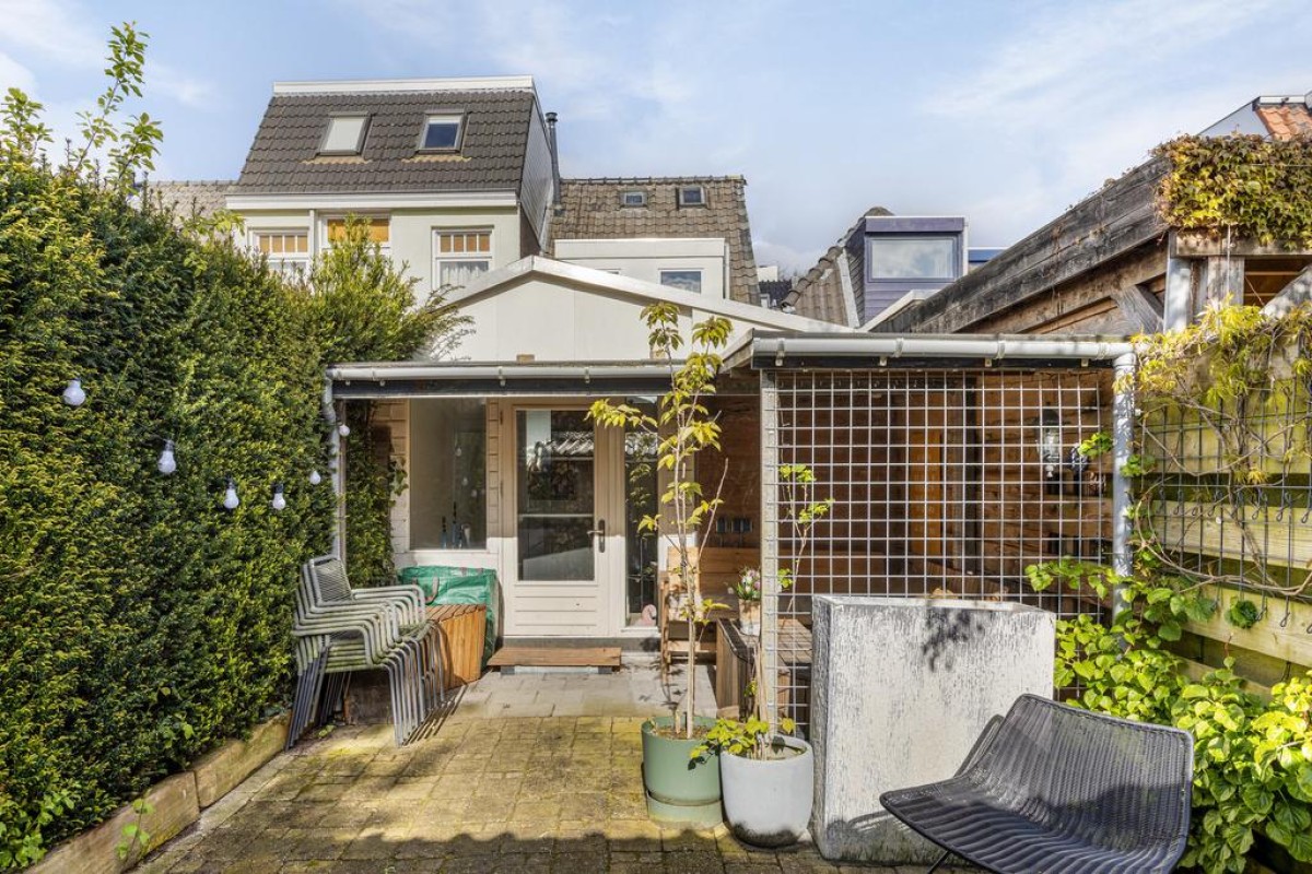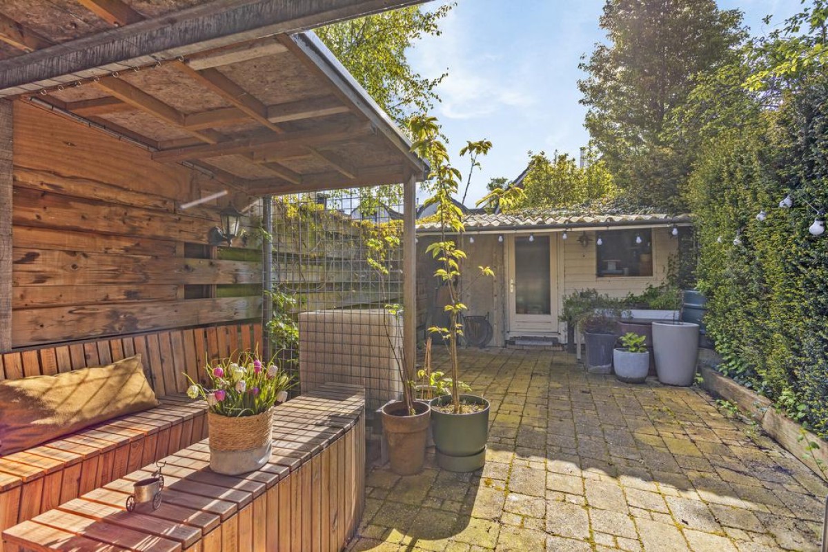 De achtertuin ligt op het zuidoosten, is diep en voorzien van een verrassend ruime houten berging over de gehele breedte. Er is veel privacy en altijd wel een plek in de zon of schaduw te vinden.