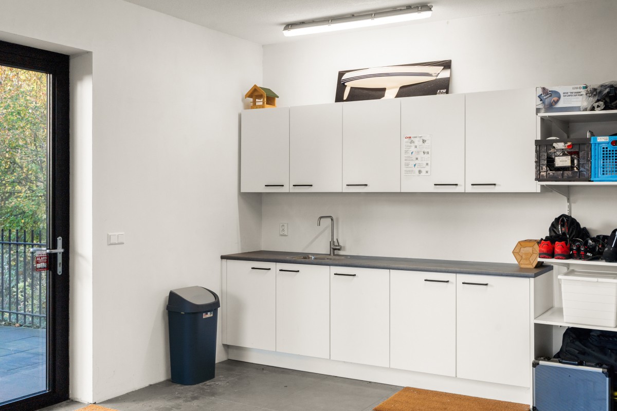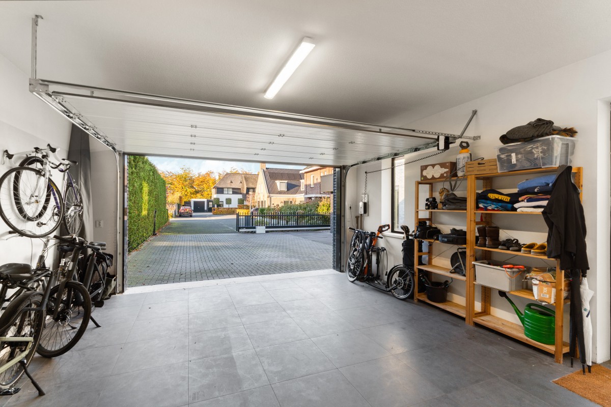 De garage van 35 m² is in 2022 geplaatst, volledig geïsoleerd, en voorzien van warm- en koud water in de pantry, een elektrische roldeur en een deur naar buiten. Voor de garage kunnen zeker twee auto's op de oprit geparkeerd worden. Daarnaast zijn er twee laadpunten voor elektrische auto's – niet te missen anno 2025!